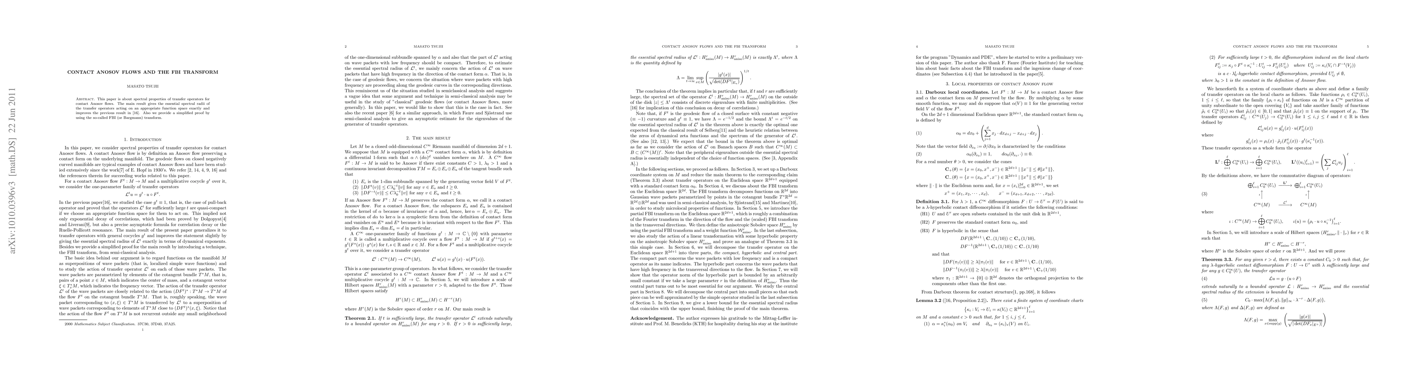 This paper investigates the spectral properties of transfer operators for contact Anosov flows, determining the essential spectral radius in terms of dynamical exponents. The authors provide a simplified proof leveraging the FBI transform.