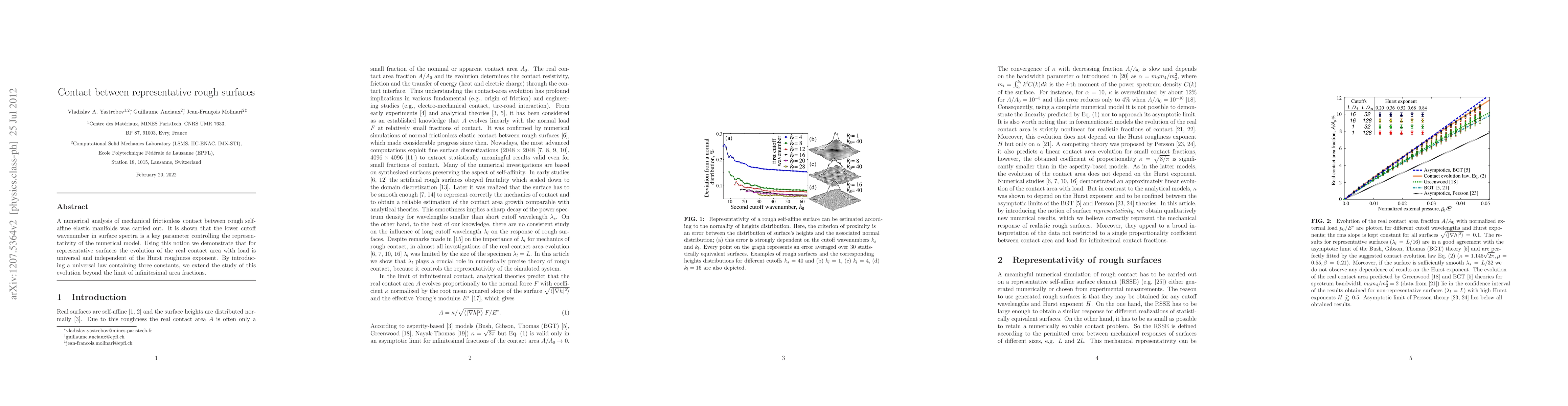 A numerical analysis of mechanical frictionless contact between rough self-affine elastic manifolds was carried out. It is shown that the lower cutoff wavenumber in surface spectra is a key parameter controlling the representativity of the numerical model. Using this notion we demonstrate that for representative surfaces the evolution of the real contact area with load is universal and independent of the Hurst roughness exponent. By introducing a universal law containing three constants, we extend the study of this evolution beyond the limit of infinitesimal area fractions.