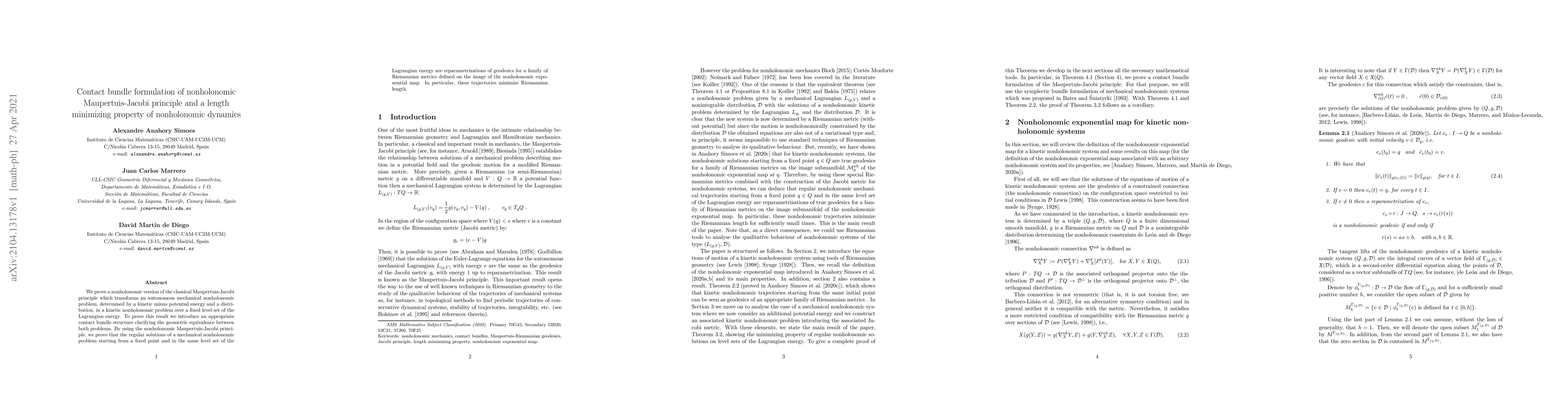 Researchers develop a new mathematical framework to transform nonholonomic mechanical problems into equivalent kinetic problems on fixed energy levels, revealing that these solutions reparametrize geodesics with minimal Riemannian length.