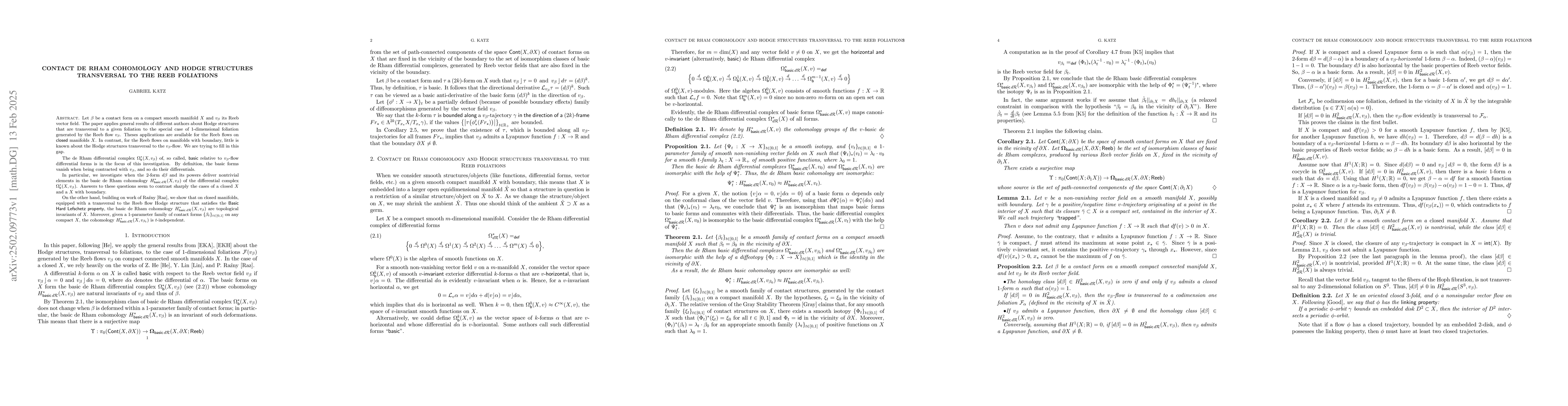 The paper establishes connections between contact de Rham cohomology, Hodge structures, and Reeb flows, providing new insights into the topological invariants of manifolds under Reeb vector field dynamics.