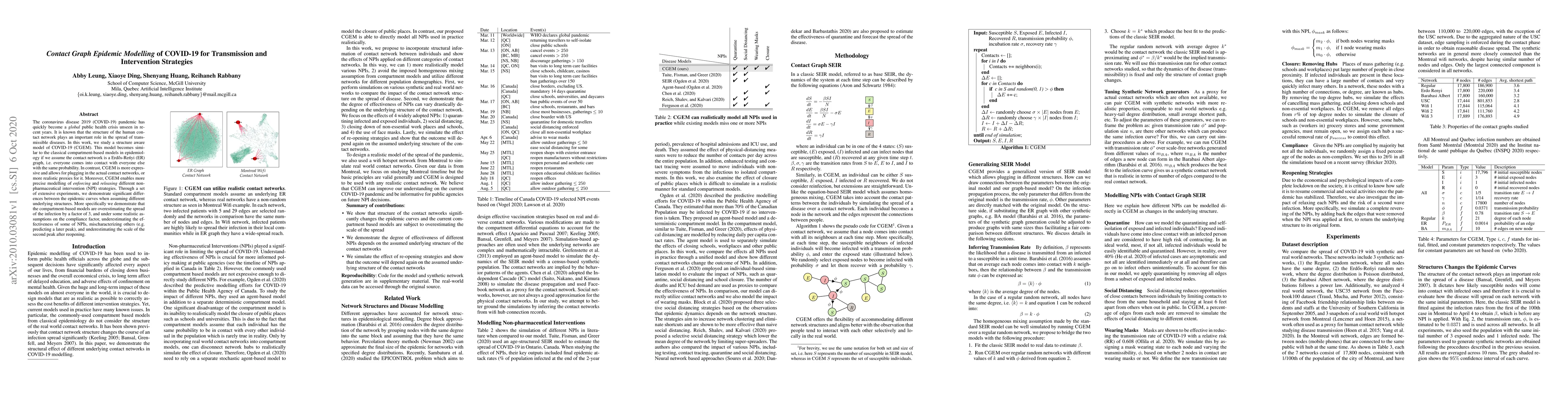 The coronavirus disease 2019 (COVID-19) pandemic has quickly become a global public health crisis unseen in recent years. It is known that the structure of the human contact network plays an important role in the spread of transmissible diseases. In this work, we study a structure aware model of COVID-19 CGEM. This model becomes similar to the classical compartment-based models in epidemiology if we assume the contact network is a Erdos-Renyi (ER) graph, i.e. everyone comes into contact with everyone else with the same probability. In contrast, CGEM is more expressive and allows for plugging in the actual contact networks, or more realistic proxies for it. Moreover, CGEM enables more precise modelling of enforcing and releasing different non-pharmaceutical intervention (NPI) strategies. Through a set of extensive experiments, we demonstrate significant differences between the epidemic curves when assuming different underlying structures. More specifically we demonstrate that the compartment-based models are overestimating the spread of the infection by a factor of 3, and under some realistic assumptions on the compliance factor, underestimating the effectiveness of some of NPIs, mischaracterizing others (e.g. predicting a later peak), and underestimating the scale of the second peak after reopening.