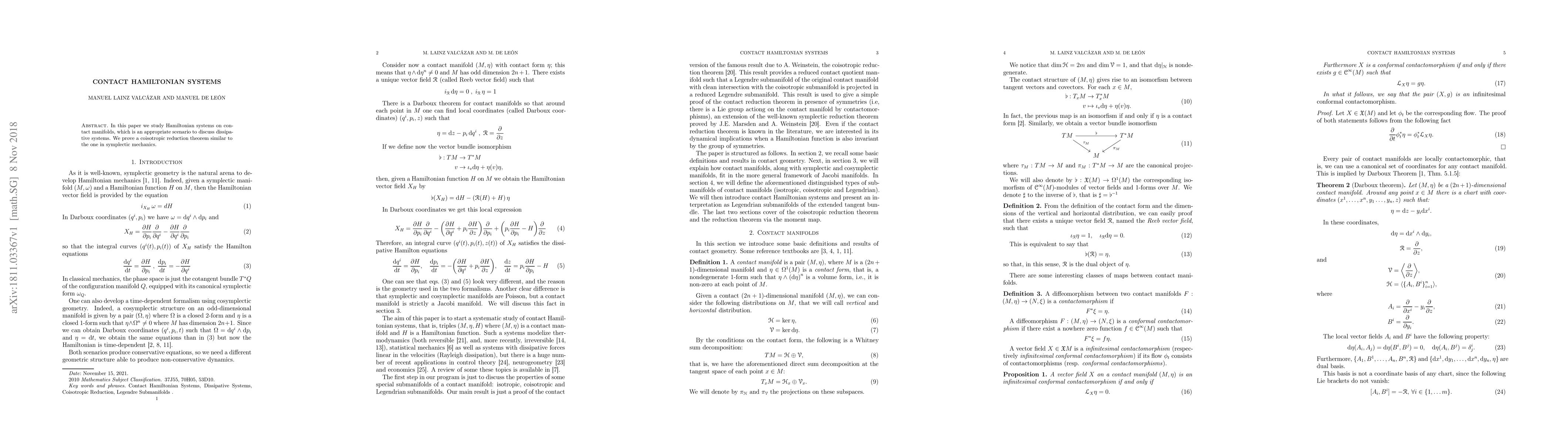 This paper investigates Hamiltonian systems on contact manifolds, focusing on their application to dissipative systems. It establishes a coisotropic reduction theorem analogous to that in symplectic mechanics.