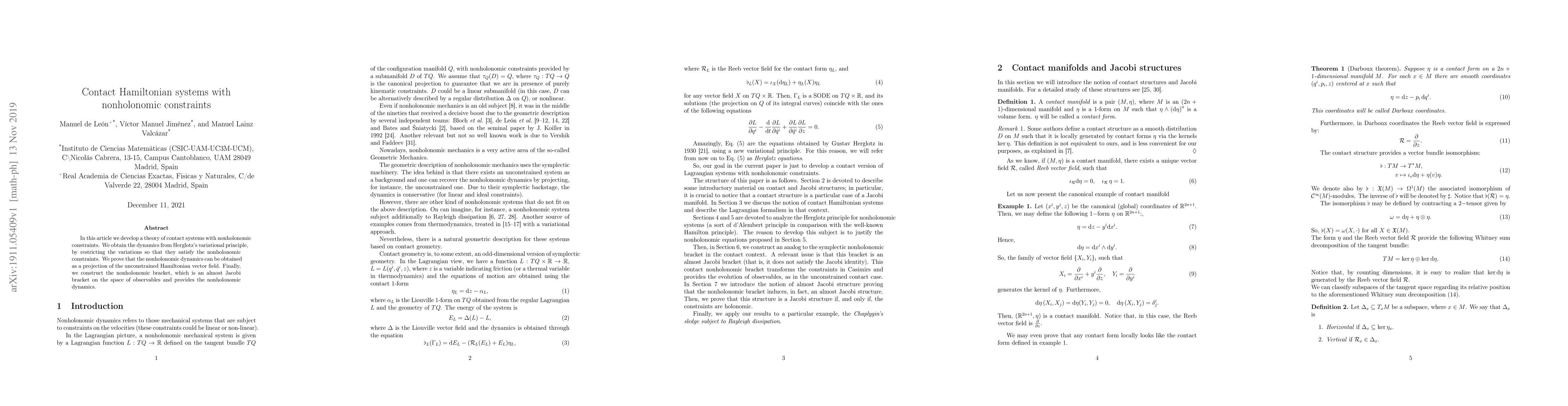 In this article we develop a theory of contact systems with nonholonomic constraints. We obtain the dynamics from Herglotz's variational principle, by restricting the variations so that they satisfy the nonholonomic constraints. We prove that the nonholonomic dynamics can be obtained as a projection of the unconstrained Hamiltonian vector field. Finally, we construct the nonholonomic bracket, which is an almost Jacobi bracket on the space of observables and provides the nonholonomic dynamics.