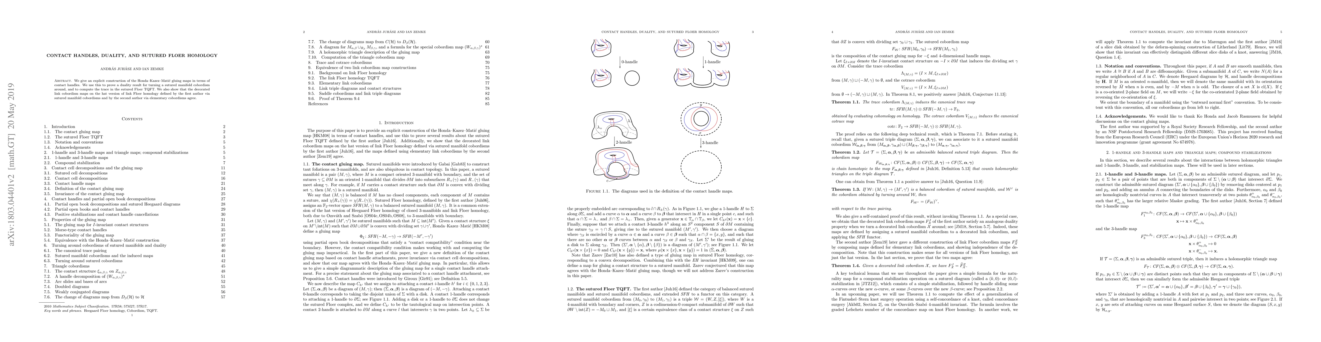 We give an explicit construction of the Honda--Kazez--Mati\'c gluing maps in terms of contact handles. We use this to prove a duality result for turning a sutured manifold cobordism around, and to compute the trace in the sutured Floer TQFT. We also show that the decorated link cobordism maps on the hat version of link Floer homology defined by the first author via sutured manifold cobordisms and by the second author via elementary cobordisms agree.