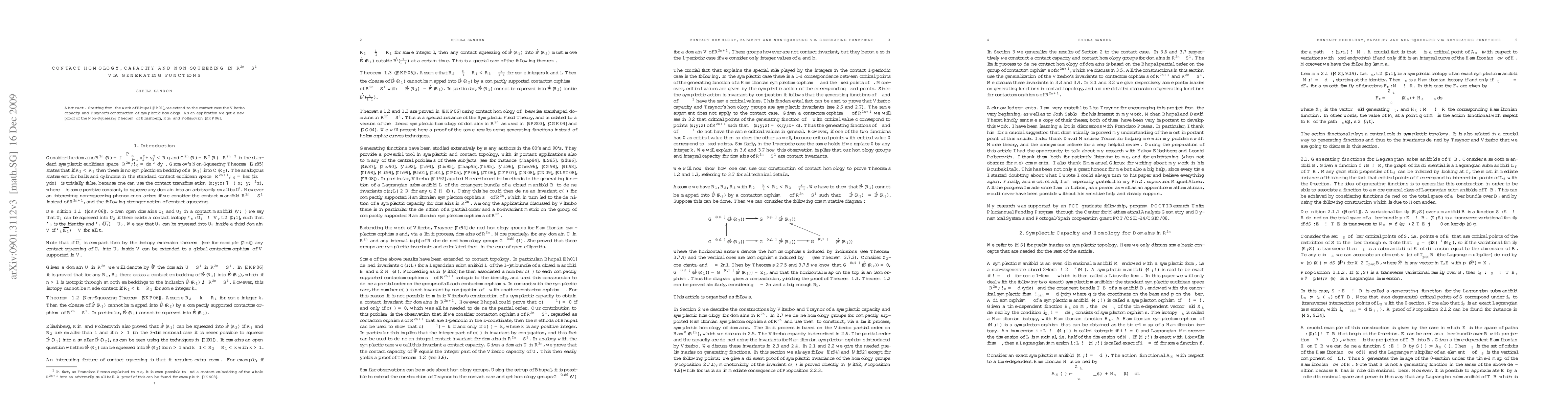 This paper extends Viterbo capacity and Traynor's symplectic homology to the contact case using generating functions, providing a new proof for the Non-Squeezing Theorem in dimensions 2n x 1.