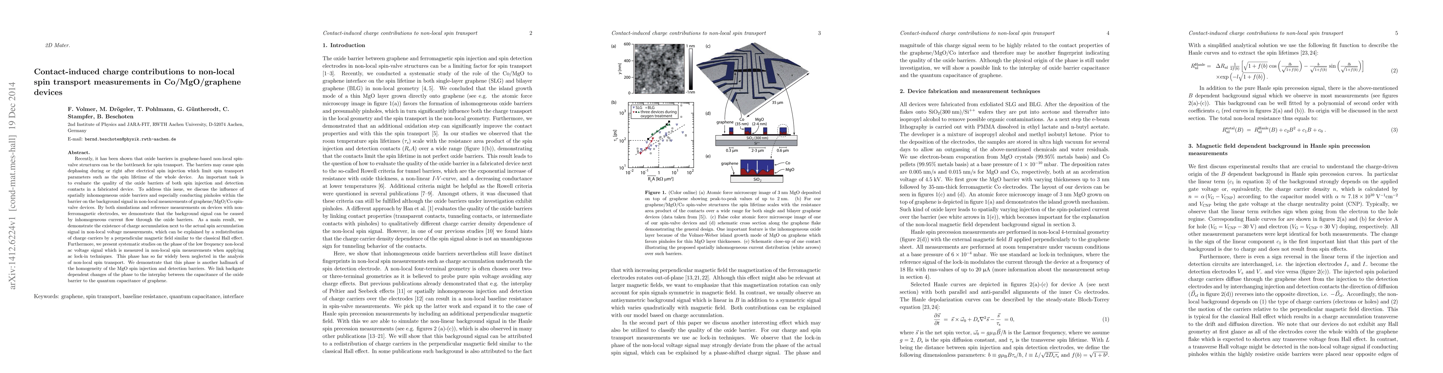 The paper presents a comprehensive analysis of charge-induced background signals and phase in non-local spin measurements, providing insights into the quality of oxide barriers in graphene-based non-local spin-valve devices.