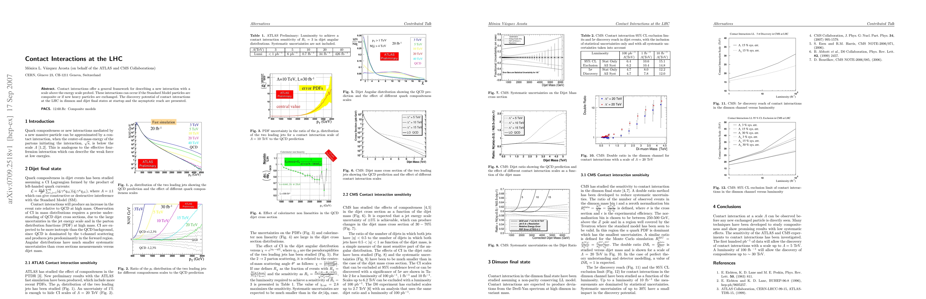 Contact interactions offer a general framework for describing a new interaction with a scale above the energy scale probed. These interactions can occur if the Standard Model particles are composite or if new heavy particles are exchanged. The discovery potential of contact interactions at the LHC in dimuon and dijet final states at startup and the asymptotic reach are presented.