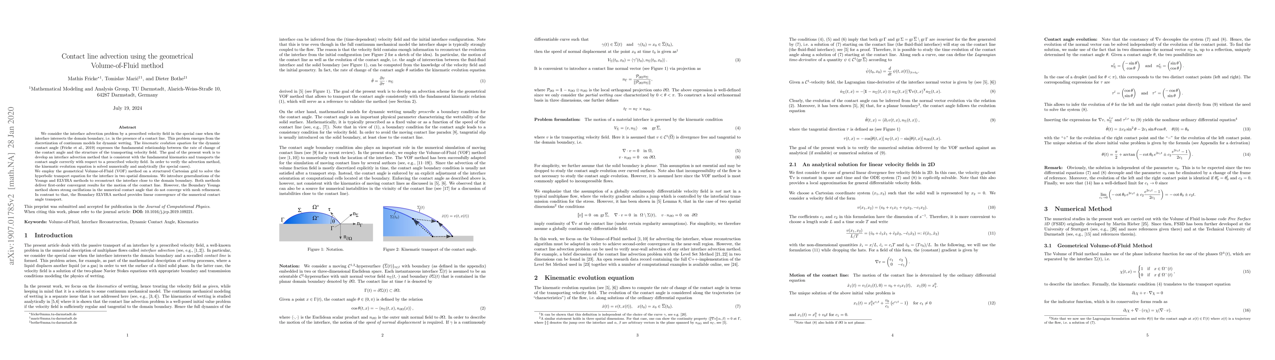 Researchers develop an interface advection method that accurately transports a contact line in the presence of a prescribed velocity field, providing linear convergence for one method and first-order convergence for another.