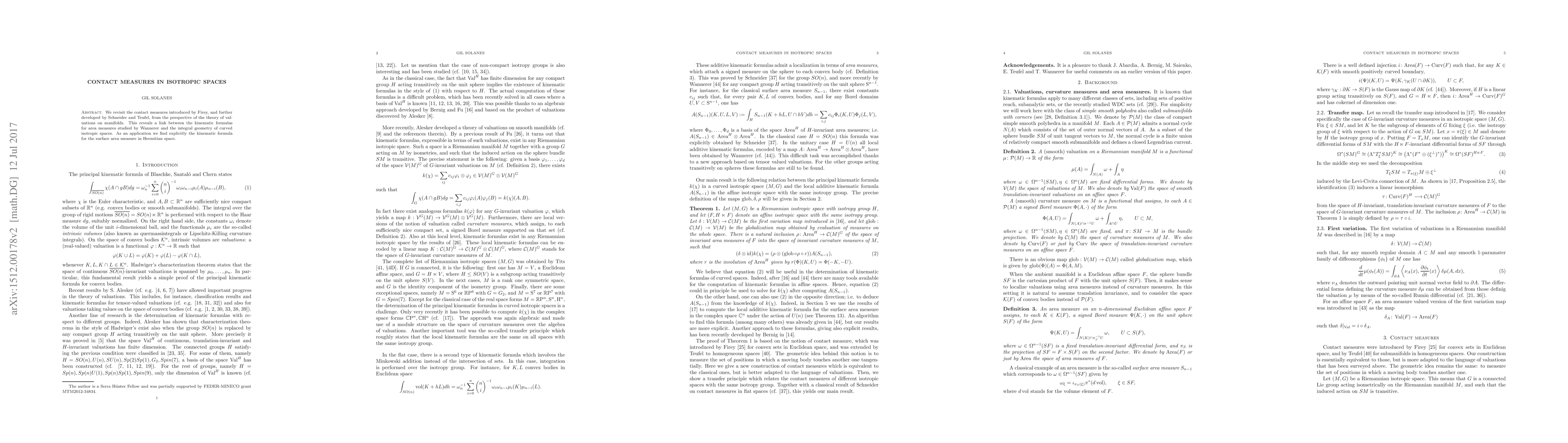 Researchers developed a link between contact measures and integral geometry in curved isotropic spaces, revealing a kinematic formula for surface area measure in hermitian space.