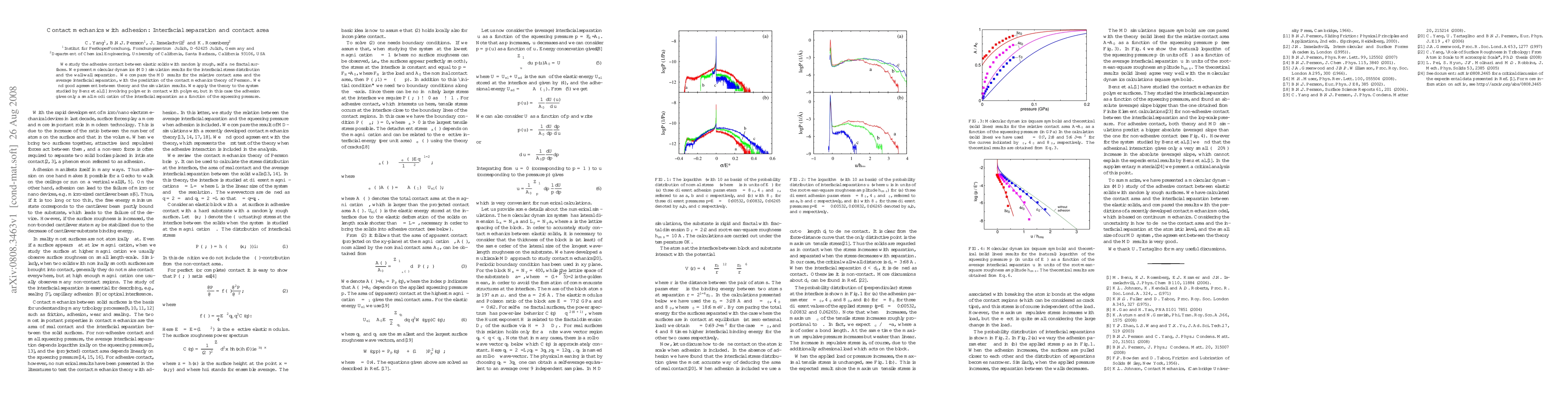 Researchers studied adhesive contact between two elastic solids with rough surfaces using molecular dynamics simulations, finding good agreement with a theory on interfacial separation and contact area.