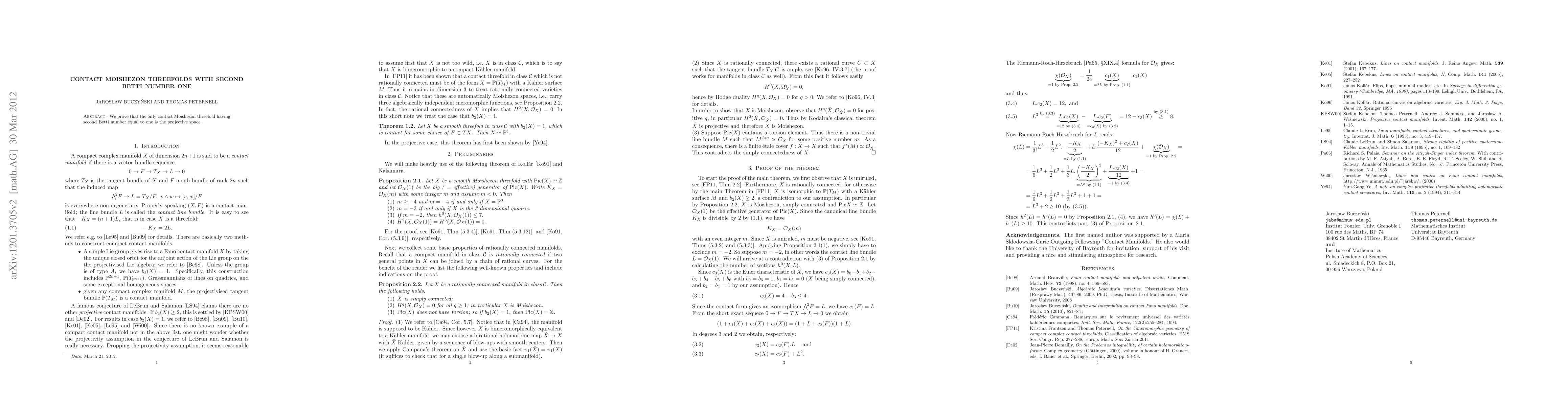 Summary: This paper demonstrates that the only contact Moishezon threefold with a second Betti number of one is the projective space, providing a definitive classification in this context.