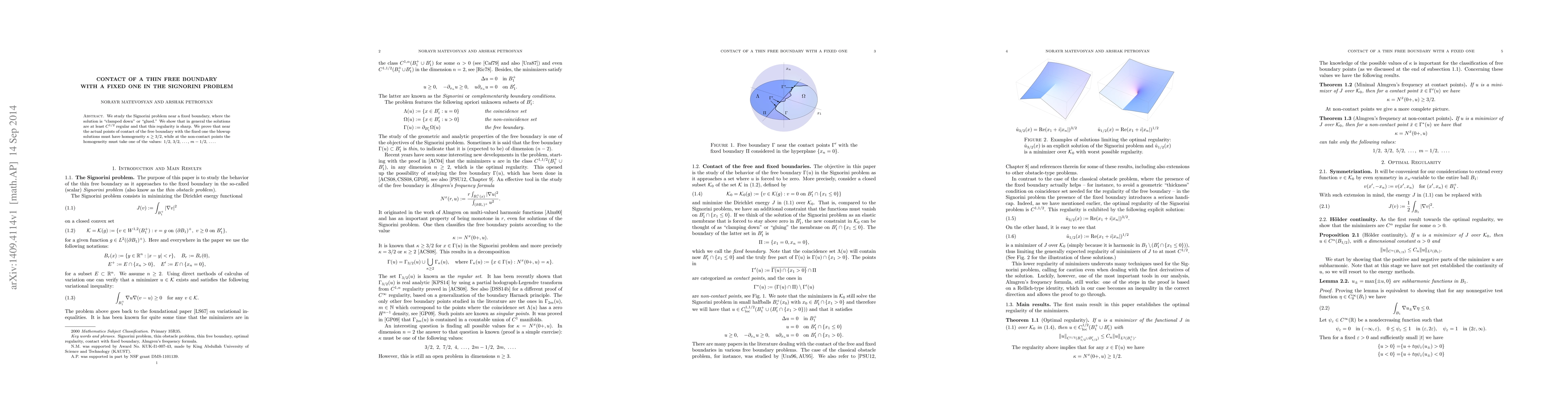 The Signorini problem near a fixed boundary shows solutions can be at least $C^{1/2}$ regular, with different homogeneity values depending on contact points.