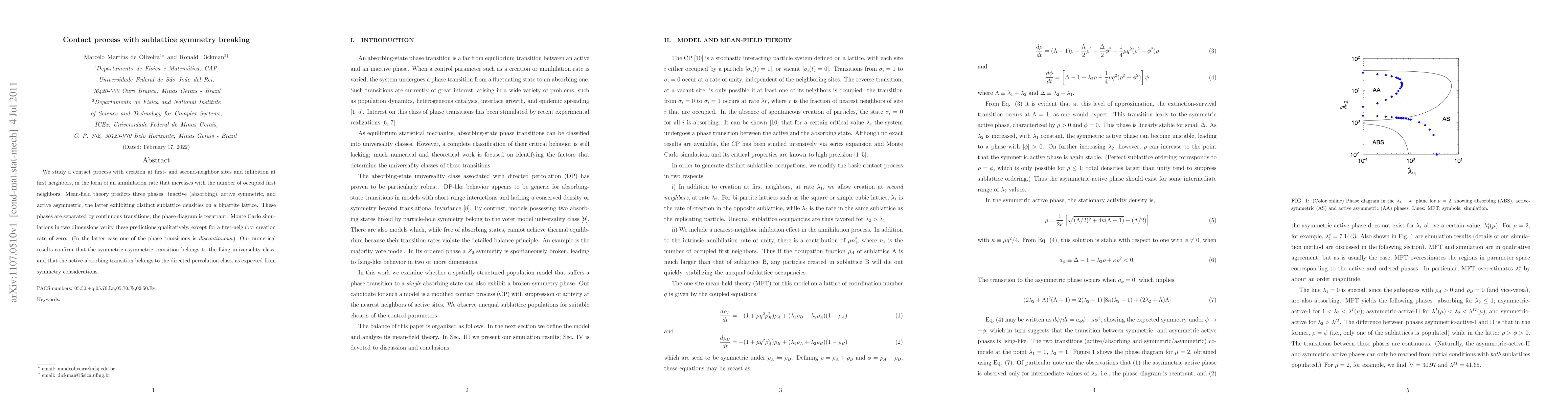 Researchers studied a contact process with symmetry breaking, finding three phases and reentrant phase transitions, which were verified through Monte Carlo simulations in two dimensions.