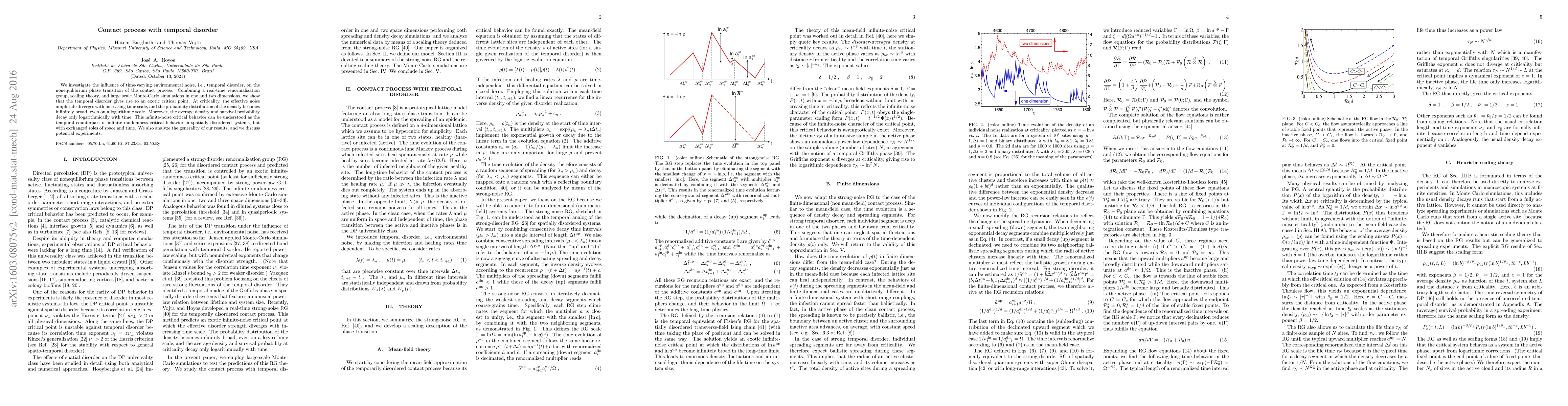 The research examines the impact of time-varying environmental noise on the nonequilibrium phase transition of the contact process, uncovering an exotic critical point where effective noise amplitude diverges with time and density distribution becomes infinitely broad. This infinite-noise critical behavior is likened to infinite-randomness in spatially disordered systems, with space and time roles exchanged.
