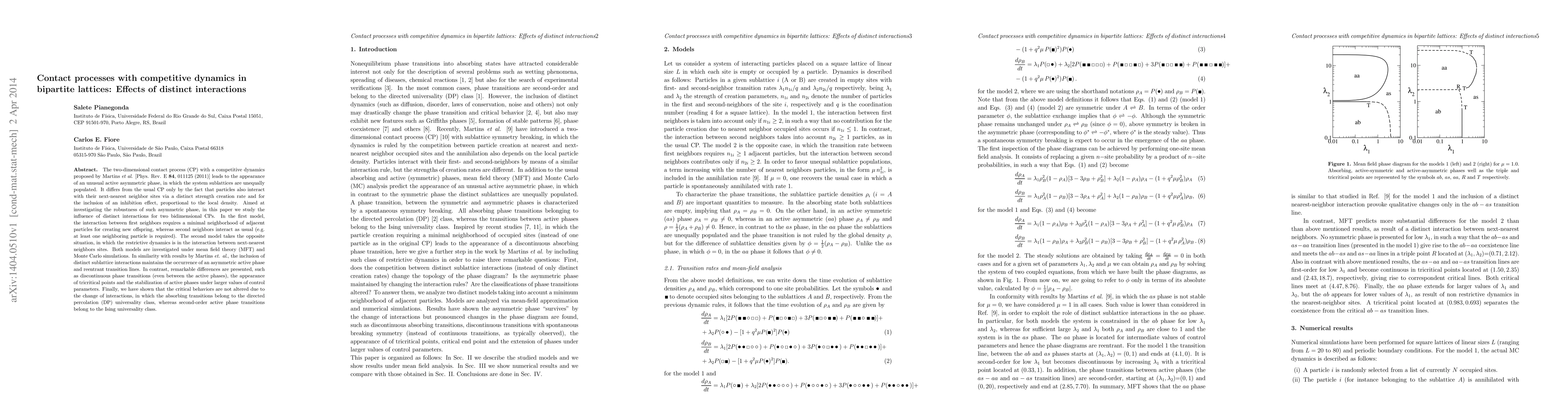 The two-dimensional contact process (CP) with a competitive dynamics proposed by Martins {\it et al.} [Phys. Rev. E {\bf 84}, 011125(2011)] leads to the appearance of an unusual active asymmetric phase, in which the system sublattices are unequally populated. It differs from the usual CP only by the fact that particles also interact with their next-nearest neighbor sites via a distinct strength creation rate and for the inclusion of an inhibition effect, proportional to the local density. Aimed at investigating the robustness of such asymmetric phase, in this paper we study the influence of distinct interactions for two bidimensional CPs. In the first model, the interaction between first neighbors requires a minimal neighborhood of adjacent particles for creating new offspring, whereas second neighbors interact as usual (e.g. at least one neighboring particle is required). The second model takes the opposite situation, in which the restrictive dynamics is in the interaction between next-nearest neighbors sites. Both models are investigated under mean field theory (MFT) and Monte Carlo simulations. In similarity with results by Martins {\it et. al.}, the inclusion of distinct sublattice interactions maintain the occurrence of an asymmetric active phase and reentrant transition lines. In contrast, remarkable differences are presented, such as discontinuous phase transitions (even between the active phases), the appearance of tricritical points and the stabilization of active phases under larger values of control parameters. Finally, we have shown that the critical behaviors are not altered due to the change of interactions, in which the absorbing transitions belong to the directed percolation (DP) universality class, whereas second-order active phase transitions belong to the Ising universality class.