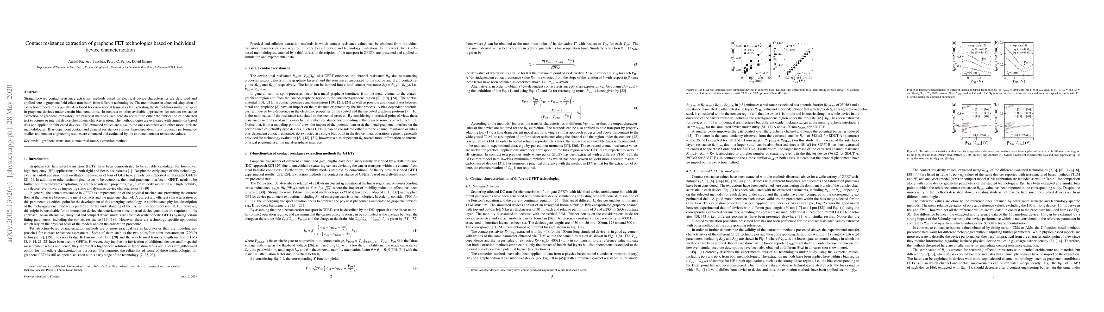 The paper describes practical methods for extracting contact resistance in graphene field-effect transistors without dedicated test structures, validated through simulations and fabricated devices, showing results comparable to more complex approaches. These methods enhance studies on bias-dependent resistances and high-frequency performance.