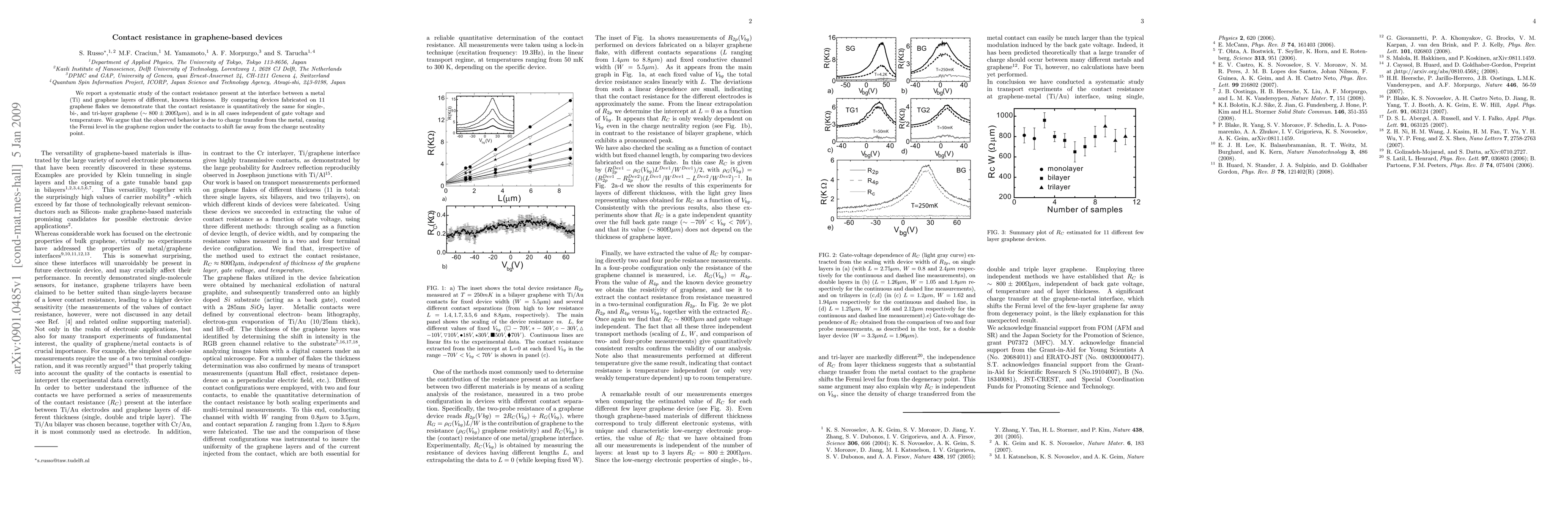 We report a systematic study of the contact resistance present at the interface between a metal (Ti) and graphene layers of different, known thickness. By comparing devices fabricated on 11 graphene flakes we demonstrate that the contact resistance is quantitatively the same for single-, bi-, and tri-layer graphene ($\sim800 \pm 200 \Omega \mu m$), and is in all cases independent of gate voltage and temperature. We argue that the observed behavior is due to charge transfer from the metal, causing the Fermi level in the graphene region under the contacts to shift far away from the charge neutrality point.