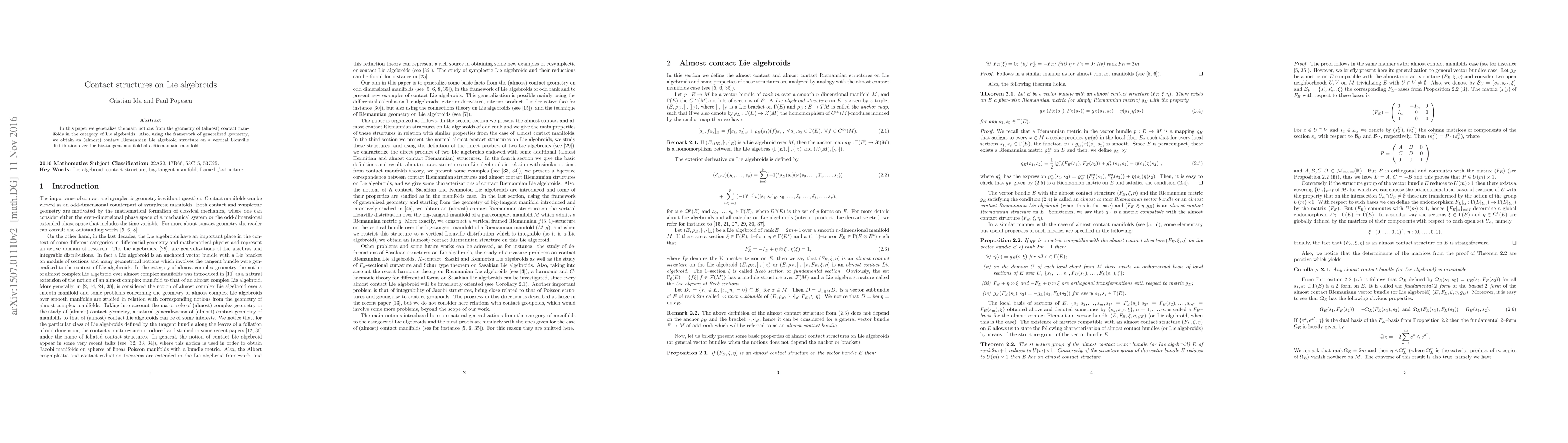 This research extends the theory of contact structures from manifolds to Lie algebroids, providing a framework for studying geometric structures on more general spaces, which can have significant implications in differential geometry and theoretical physics.