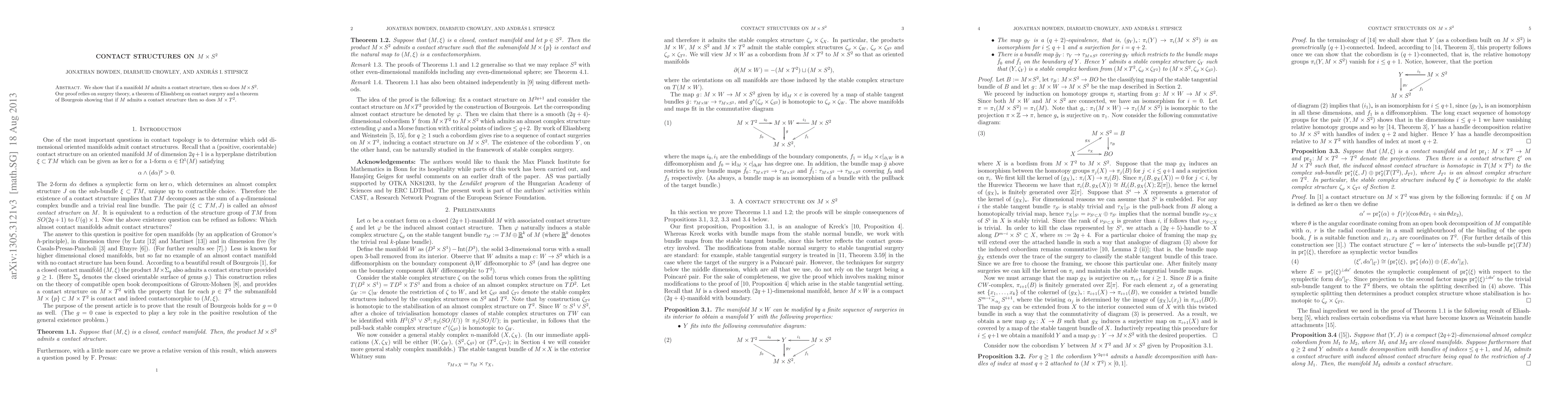 We show that if a manifold M admits a contact structure, then so does M\times S^2. Our proof relies on surgery theory, a theorem of Eliashberg on contact surgery and a theorem of Bourgeois showing that if M admits a contact structure then so does M\times T^2.