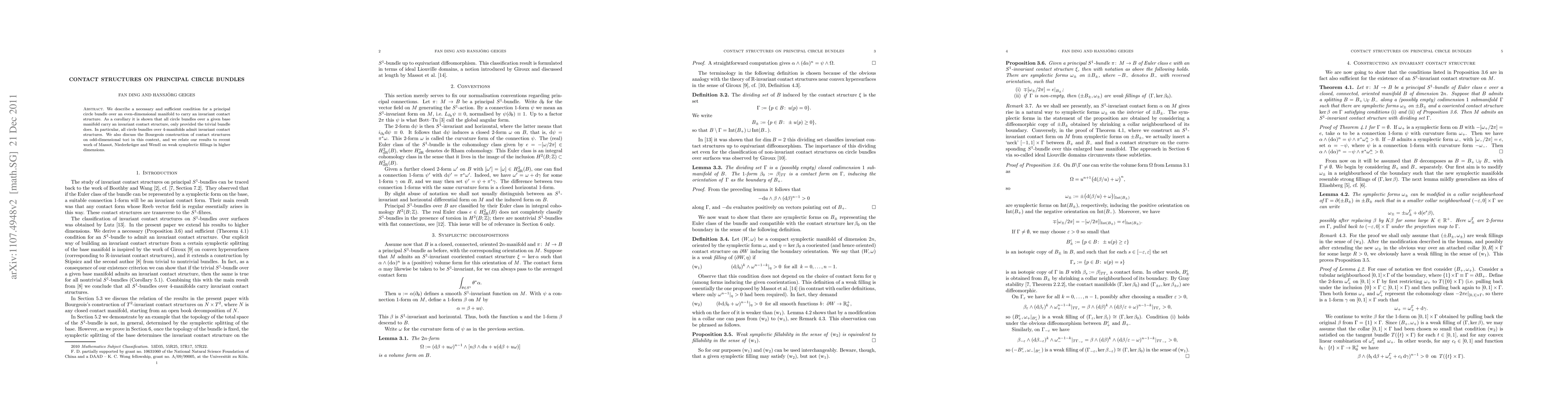 This paper establishes a condition for principal circle bundles over even-dimensional manifolds to support invariant contact structures, demonstrating that such structures exist for all circle bundles over 4-manifolds except the trivial bundle. It also connects these findings to Bourgeois's construction and recent work on weak symplectic fillings.