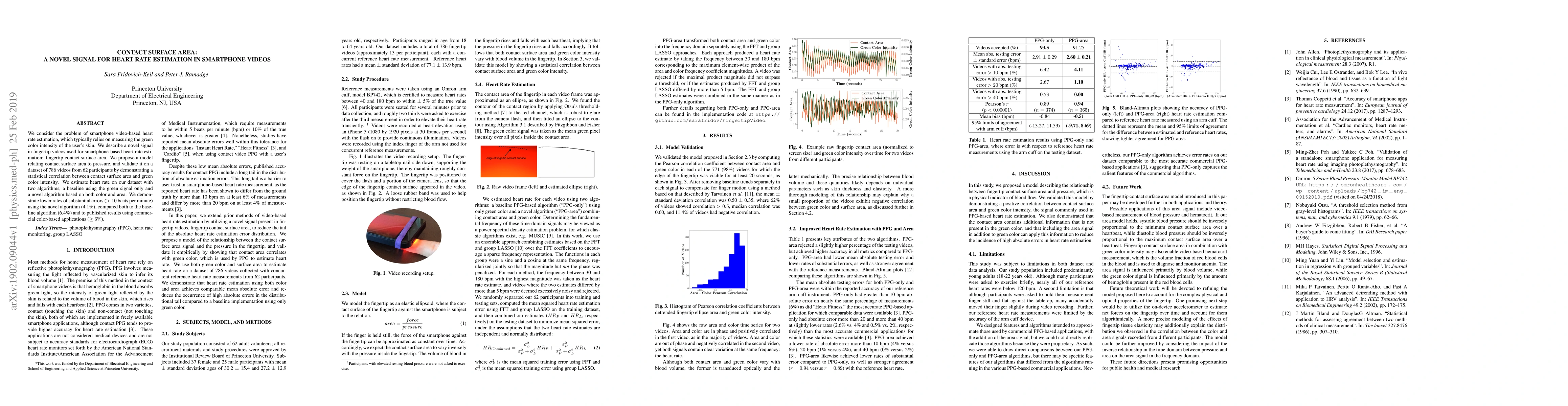 We consider the problem of smartphone video-based heart rate estimation, which typically relies on measuring the green color intensity of the user's skin. We describe a novel signal in fingertip videos used for smartphone-based heart rate estimation: fingertip contact surface area. We propose a model relating contact surface area to pressure, and validate it on a dataset of 786 videos from 62 participants by demonstrating a statistical correlation between contact surface area and green color intensity. We estimate heart rate on our dataset with two algorithms, a baseline using the green signal only and a novel algorithm based on both color and area. We demonstrate lower rates of substantial errors (>10 beats per minute) using the novel algorithm (4.1%), compared both to the baseline algorithm (6.4%) and to published results using commercial color-based applications (>6%).