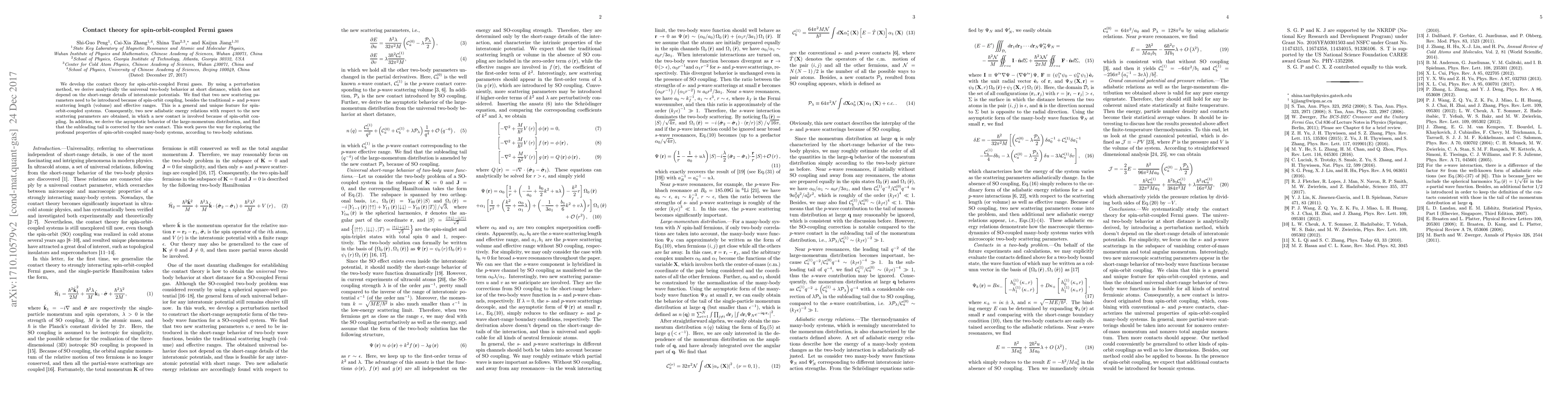 This paper develops a contact theory for spin-orbit-coupled Fermi gases, deriving universal two-body behavior at short distances and introducing two new scattering parameters due to spin-orbit coupling. It also establishes new adiabatic energy relations and corrects the large-momentum distribution's asymptotic behavior.