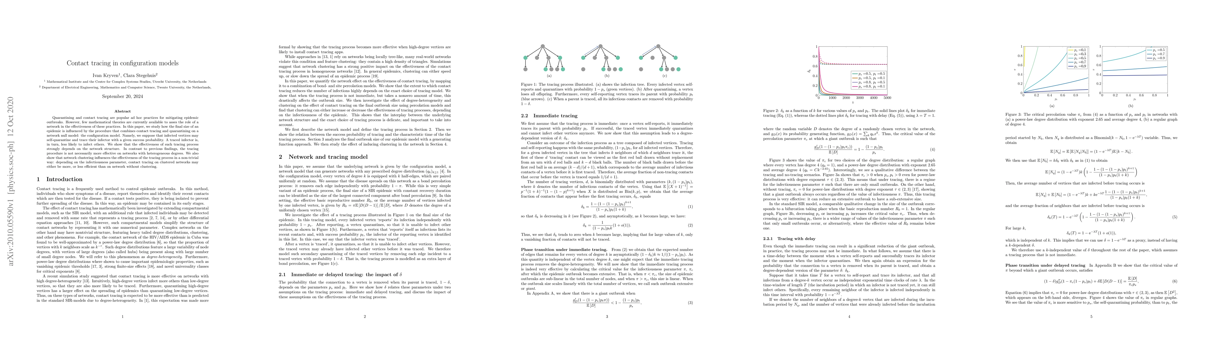 This paper examines how contact tracing and quarantining influence epidemic outcomes in networks using the configuration model. It finds that the effectiveness of contact tracing is highly dependent on network structure, challenging the notion that it is always more effective on networks with heterogeneous degrees, and showing that clustering can either enhance or diminish its efficiency based on the infectiousness parameter.