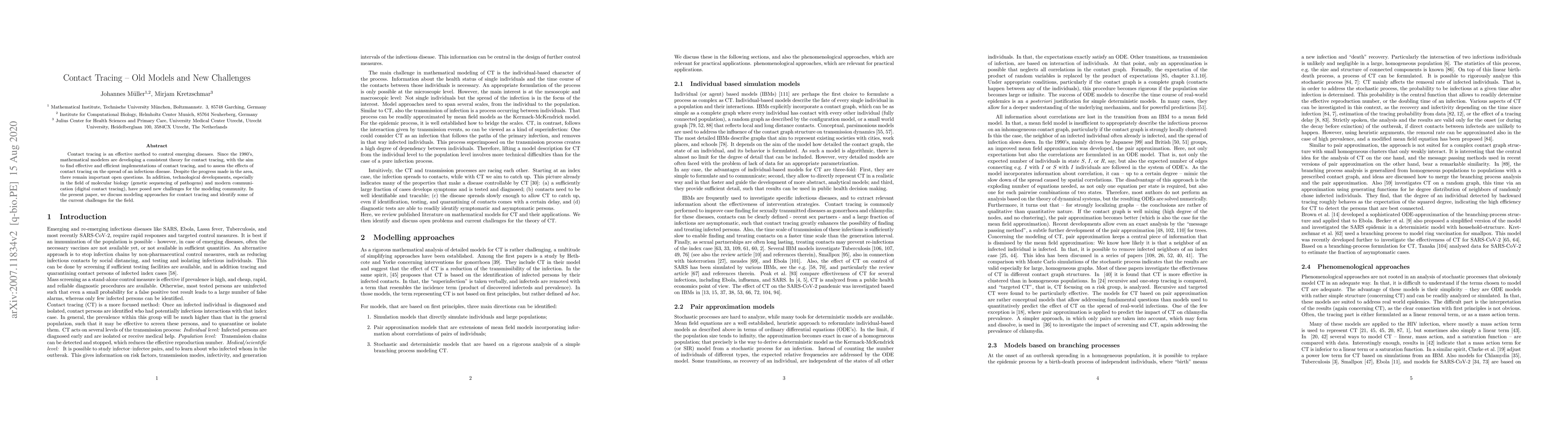 Contact tracing is a key method to control emerging diseases, but new technological developments have introduced new challenges for modeling approaches. Researchers discuss current challenges in contact tracing modeling to find effective and efficient implementations.