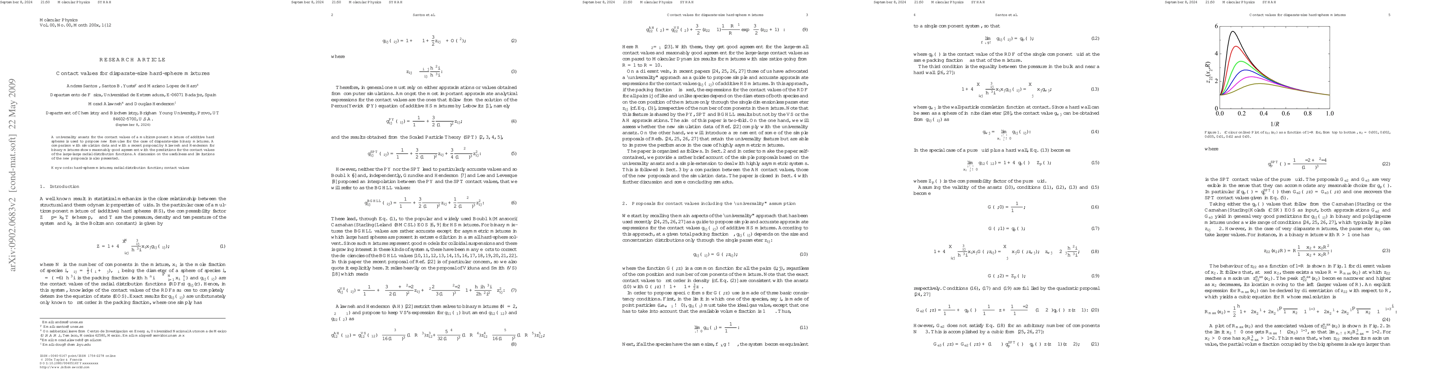 A universality ansatz for the contact values of a multicomponent mixture of additive hard spheres is used to propose new formulae for the case of disparate-size binary mixtures. A comparison with simulation data and with a recent proposal by Alawneh and Henderson for binary mixtures shows reasonably good agreement with the predictions for the contact values of the large-large radial distribution functions. A discussion on the usefulness and limitations of the new proposals is also presented.