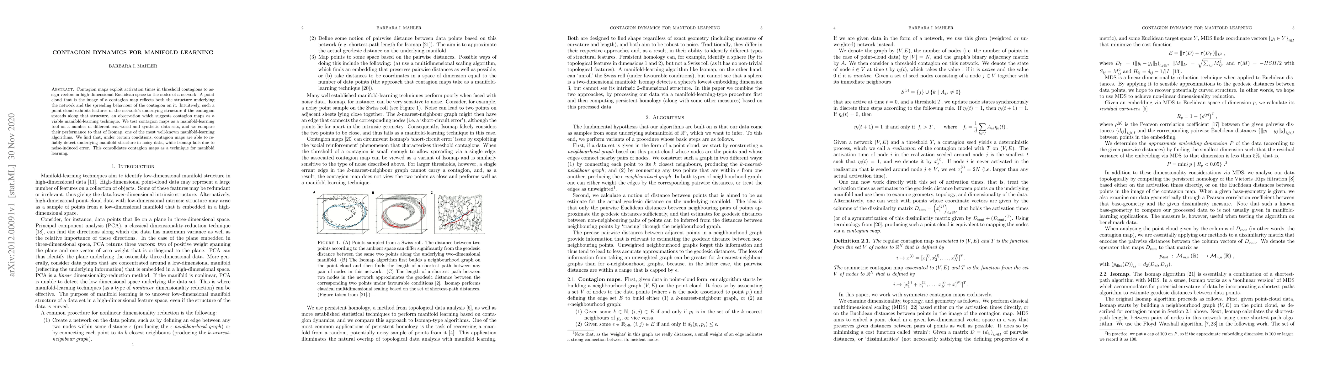 Contagion maps exploit activation times in threshold contagions to assign vectors in high-dimensional Euclidean space to the nodes of a network. A point cloud that is the image of a contagion map reflects both the structure underlying the network and the spreading behaviour of the contagion on it. Intuitively, such a point cloud exhibits features of the network's underlying structure if the contagion spreads along that structure, an observation which suggests contagion maps as a viable manifold-learning technique. We test contagion maps as a manifold-learning tool on a number of different real-world and synthetic data sets, and we compare their performance to that of Isomap, one of the most well-known manifold-learning algorithms. We find that, under certain conditions, contagion maps are able to reliably detect underlying manifold structure in noisy data, while Isomap fails due to noise-induced error. This consolidates contagion maps as a technique for manifold learning.