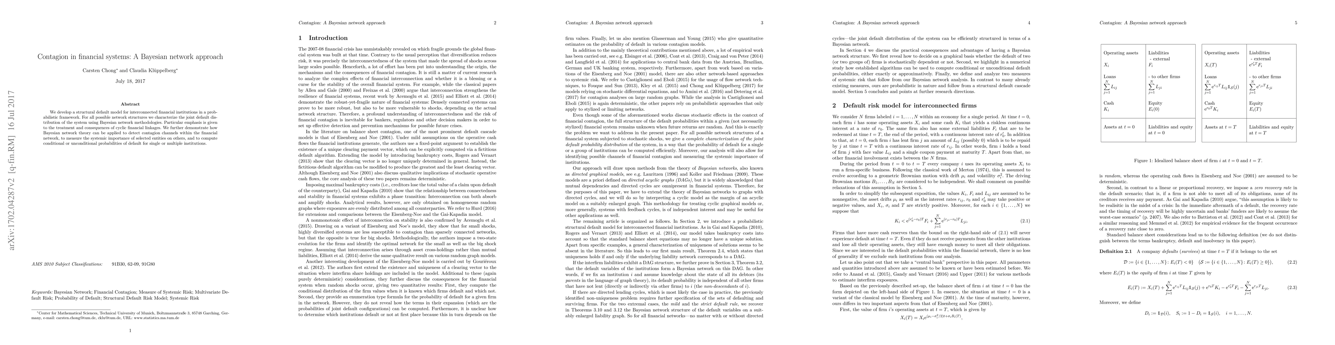 This paper develops a structural default model for interconnected financial institutions using Bayesian network methodologies to characterize joint default distributions and detect contagion channels. It highlights the systemic impact of cyclic financial linkages and demonstrates how to measure the importance of individual entities and compute default probabilities.