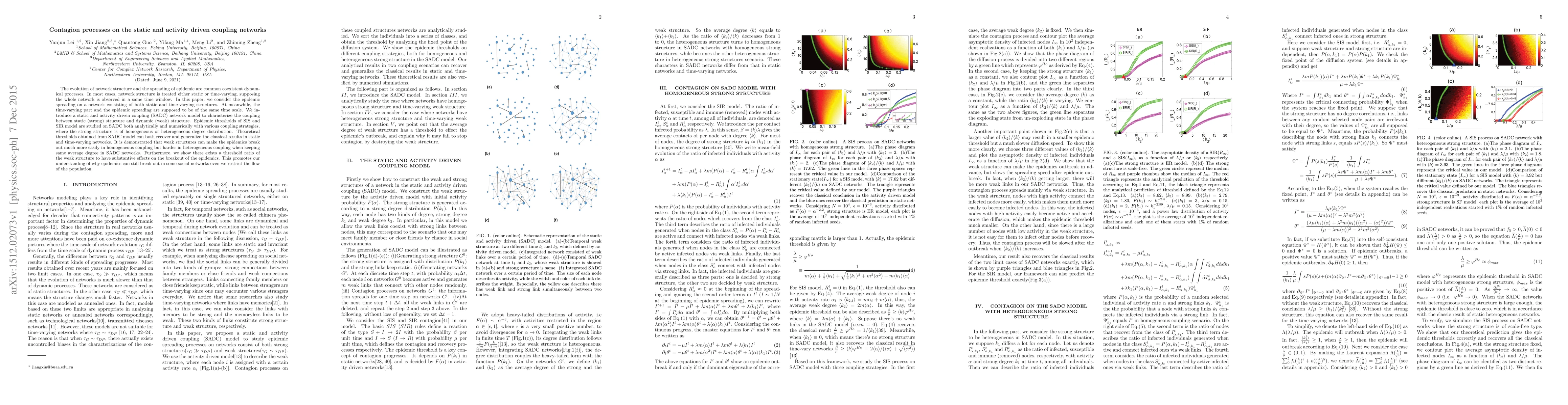 The evolution of network structure and the spreading of epidemic are common coexistent dynamical processes. In most cases, network structure is treated either static or time-varying, supposing the whole network is observed in a same time window. In this paper, we consider the epidemic spreading on a network consisting of both static and time-varying structures. At meanwhile, the time-varying part and the epidemic spreading are supposed to be of the same time scale. We introduce a static and activity driven coupling (SADC) network model to characterize the coupling between static (strong) structure and dynamic (weak) structure. Epidemic thresholds of SIS and SIR model are studied on SADC both analytically and numerically with various coupling strategies, where the strong structure is of homogeneous or heterogeneous degree distribution. Theoretical thresholds obtained from SADC model can both recover and generalize the classical results in static and time-varying networks. It is demonstrated that weak structures can make the epidemics break out much more easily in homogeneous coupling but harder in heterogeneous coupling when keeping same average degree in SADC networks. Furthermore, we show there exists a threshold ratio of the weak structure to have substantive effects on the breakout of the epidemics. This promotes our understanding of why epidemics can still break out in some social networks even we restrict the flow of the population.