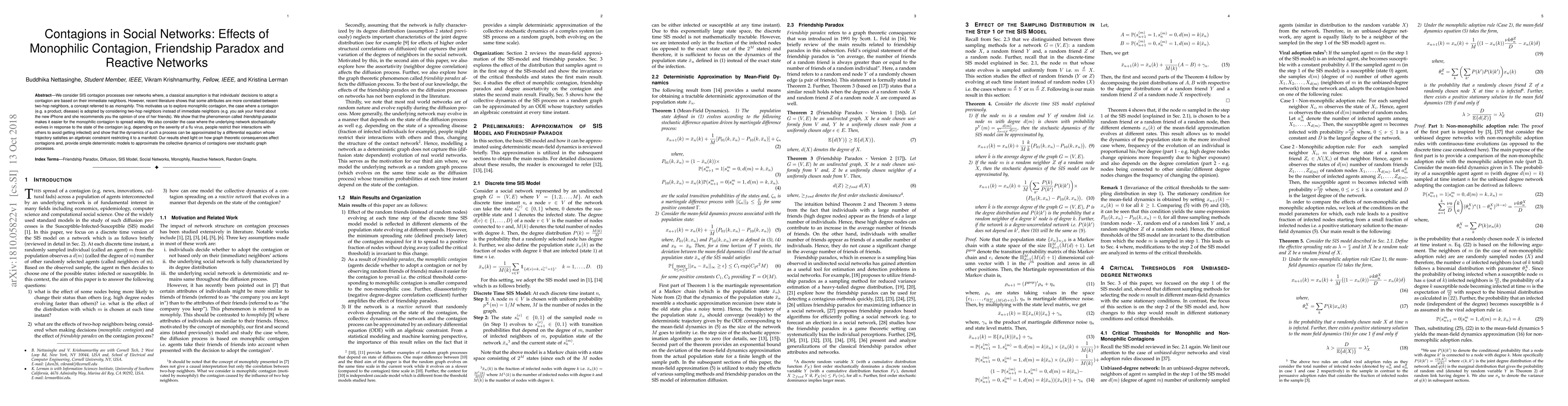 We consider SIS contagion processes over networks where, a classical assumption is that individuals' decisions to adopt a contagion are based on their immediate neighbors. However, recent literature shows that some attributes are more correlated between two-hop neighbors, a concept referred to as monophily. This motivates us to explore monophilic contagion, the case where a contagion (e.g. a product, disease) is adopted by considering two-hop neighbors instead of immediate neighbors (e.g. you ask your friend about the new iPhone and she recommends you the opinion of one of her friends). We show that the phenomenon called friendship paradox makes it easier for the monophilic contagion to spread widely. We also consider the case where the underlying network stochastically evolves in response to the state of the contagion (e.g. depending on the severity of a flu virus, people restrict their interactions with others to avoid getting infected) and show that the dynamics of such a process can be approximated by a differential equation whose trajectory satisfies an algebraic constraint restricting it to a manifold. Our results shed light on how graph theoretic consequences affect contagions and, provide simple deterministic models to approximate the collective dynamics of contagions over stochastic graph processes.