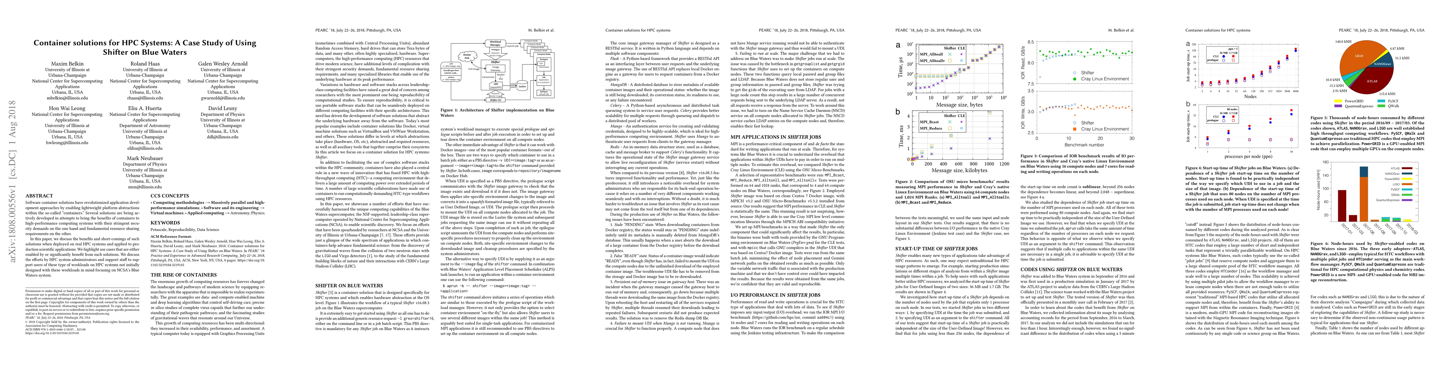 This paper examines the deployment of container solutions, specifically Shifter, on the Blue Waters HPC system, highlighting both benefits and challenges. It discusses how containers enable new application development approaches while addressing the stringent security and resource-sharing demands of HPC environments.