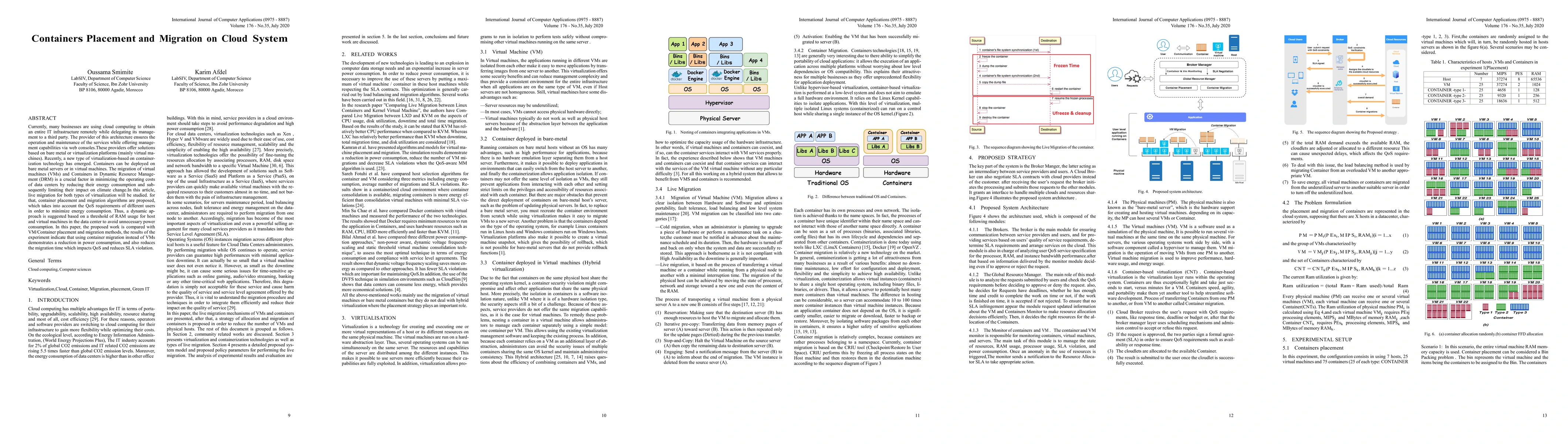 This research paper proposes container placement and migration algorithms to minimize energy consumption in cloud systems, reducing power consumption and improving QoS.
