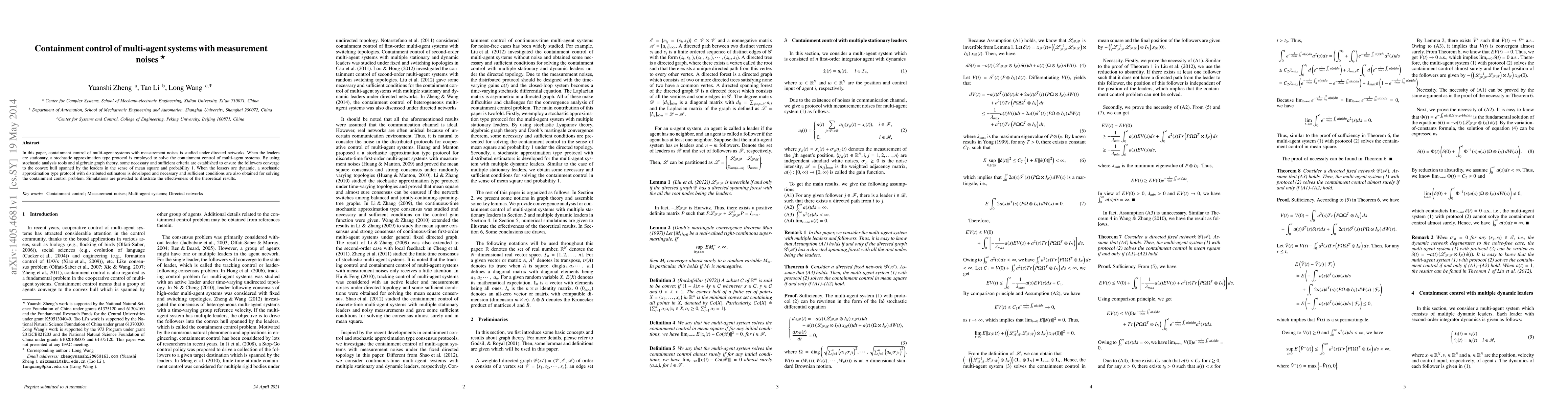 Yuan Gao, Sandra Hirche, Zhongkui Li et al.