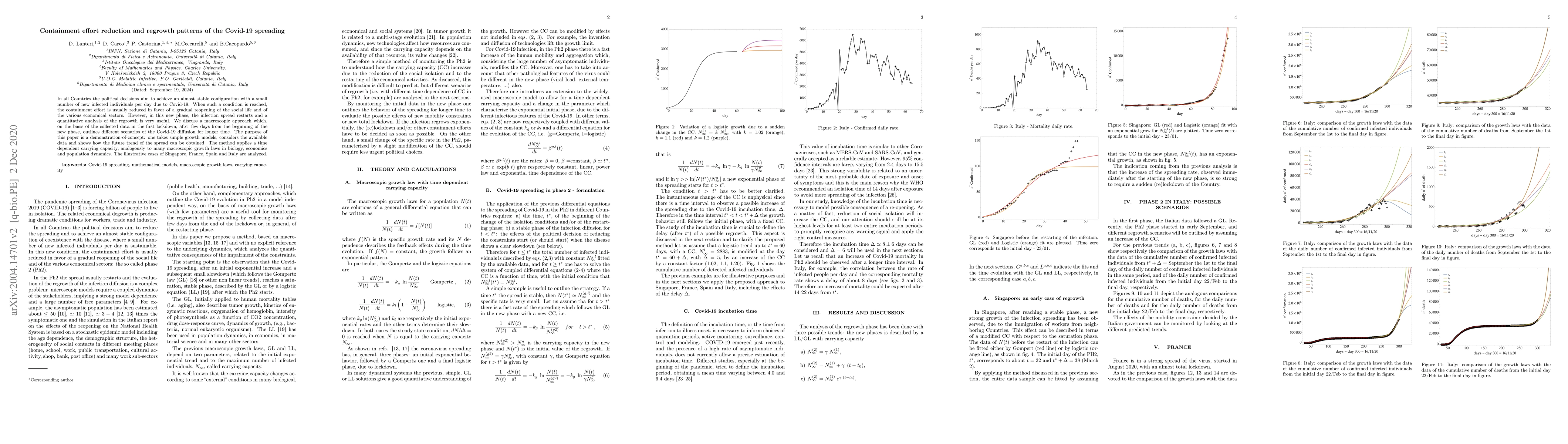 In all Countries the political decisions aim to achieve an almost stable configuration with a small number of new infected individuals per day due to Covid-19. When such a condition is reached, the containment effort is usually reduced in favor of a gradual reopening of the social life and of the various economical sectors. However, in this new phase, the infection spread restarts and a quantitative analysis of the regrowth is very useful. We discuss a macroscopic approach which, on the basis of the collected data in the first lockdown, after few days from the beginning of the new phase, outlines different scenarios of the Covid-19 diffusion for longer time. The purpose of this paper is a demonstration-of-concept: one takes simple growth models, considers the available data and shows how the future trend of the spread can be obtained. The method applies a time dependent carrying capacity, analogously to many macroscopic growth laws in biology, economics and population dynamics. The illustrative cases of Singapore, France, Spain and Italy are analyzed.