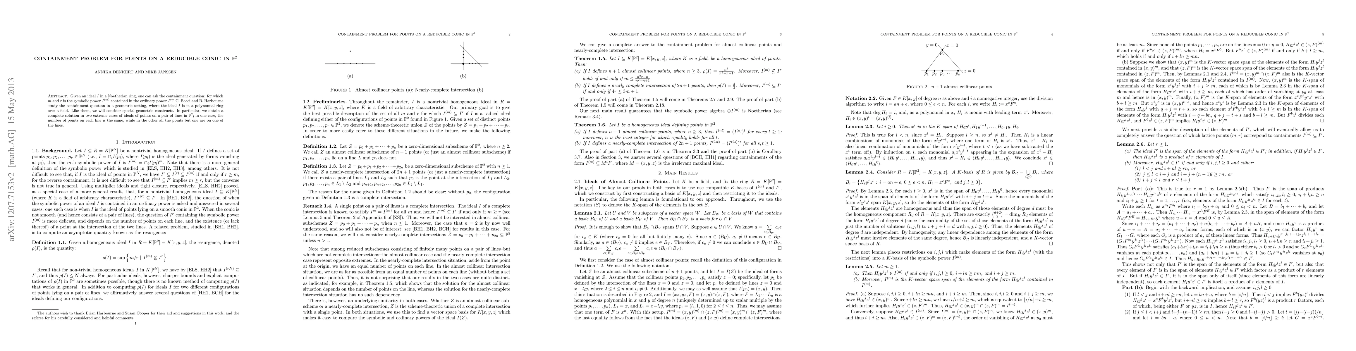 This paper investigates the containment problem for symbolic and ordinary powers of ideals corresponding to points on a reducible conic in projective space $\mathbb{P}^2$. It provides a complete solution for two specific configurations of points on a pair of lines, distinguishing cases where points are evenly distributed versus those where most points lie on one line.