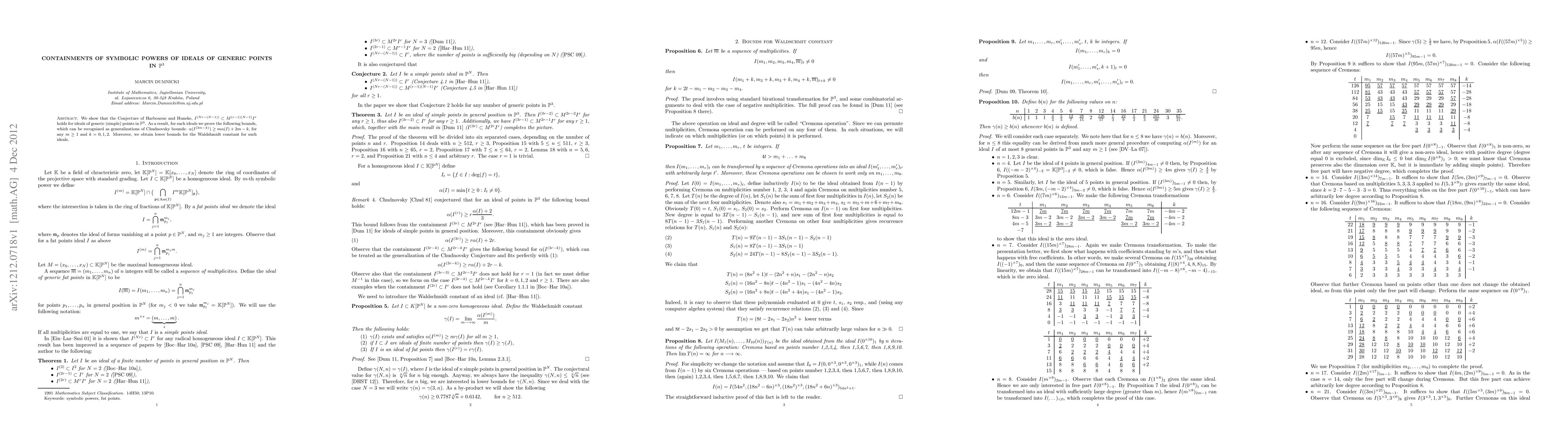 We show that the Conjecture of Harbourne and Huneke, $I^{(Nr-(N-1))} \subset M^{(r-1)(N-1)}I^{r}$ holds for ideals of generic (simple) points in $\PP^3$. As a result, for such ideals we prove the following bounds, which can be recognized as generalizations of Chudnovsky bounds: $\alpha(I^{(3m-k)}) \geq m\alpha(I)+2m-k$, for any $m \geq 1$ and $k=0,1,2$. Moreover, we obtain lower bounds for the Waldshmidt constant for such ideals.