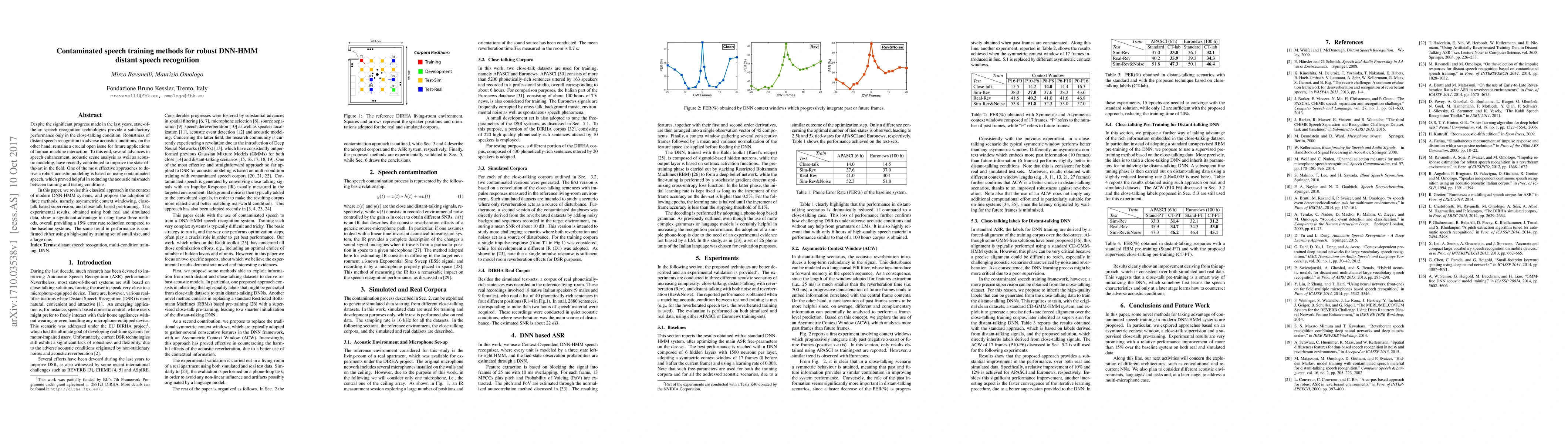 Despite the significant progress made in the last years, state-of-the-art speech recognition technologies provide a satisfactory performance only in the close-talking condition. Robustness of distant speech recognition in adverse acoustic conditions, on the other hand, remains a crucial open issue for future applications of human-machine interaction. To this end, several advances in speech enhancement, acoustic scene analysis as well as acoustic modeling, have recently contributed to improve the state-of-the-art in the field. One of the most effective approaches to derive a robust acoustic modeling is based on using contaminated speech, which proved helpful in reducing the acoustic mismatch between training and testing conditions. In this paper, we revise this classical approach in the context of modern DNN-HMM systems, and propose the adoption of three methods, namely, asymmetric context windowing, close-talk based supervision, and close-talk based pre-training. The experimental results, obtained using both real and simulated data, show a significant advantage in using these three methods, overall providing a 15% error rate reduction compared to the baseline systems. The same trend in performance is confirmed either using a high-quality training set of small size, and a large one.