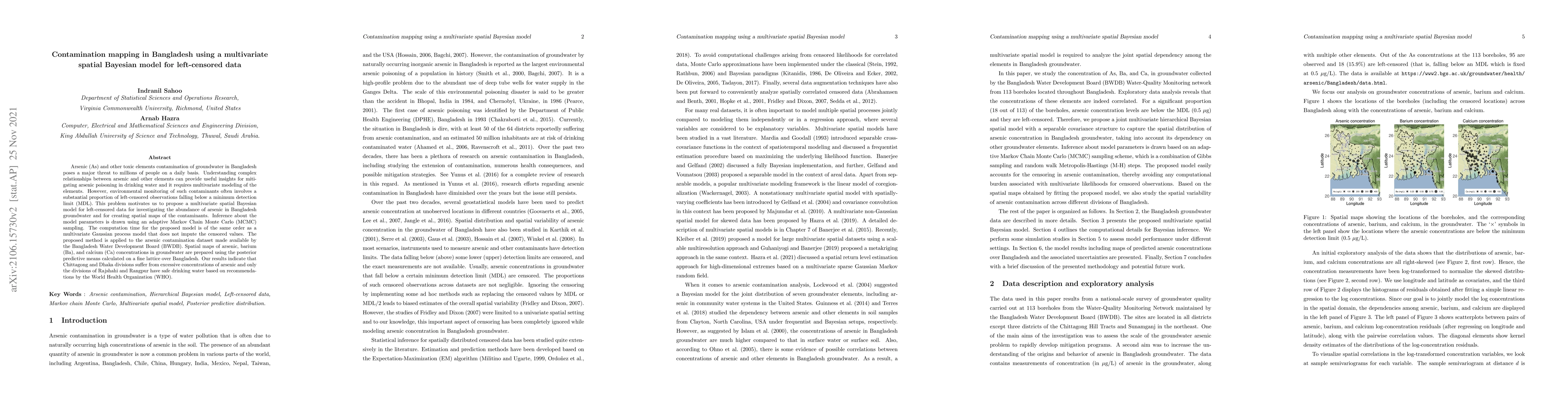 This paper proposes a multivariate spatial Bayesian model to map arsenic and other toxic element contamination in Bangladesh groundwater, addressing left-censored data issues. The model generates spatial maps of arsenic, barium, and calcium, revealing high arsenic concentrations in Chittagong and Dhaka, while Rajshahi and Rangpur have safer levels.