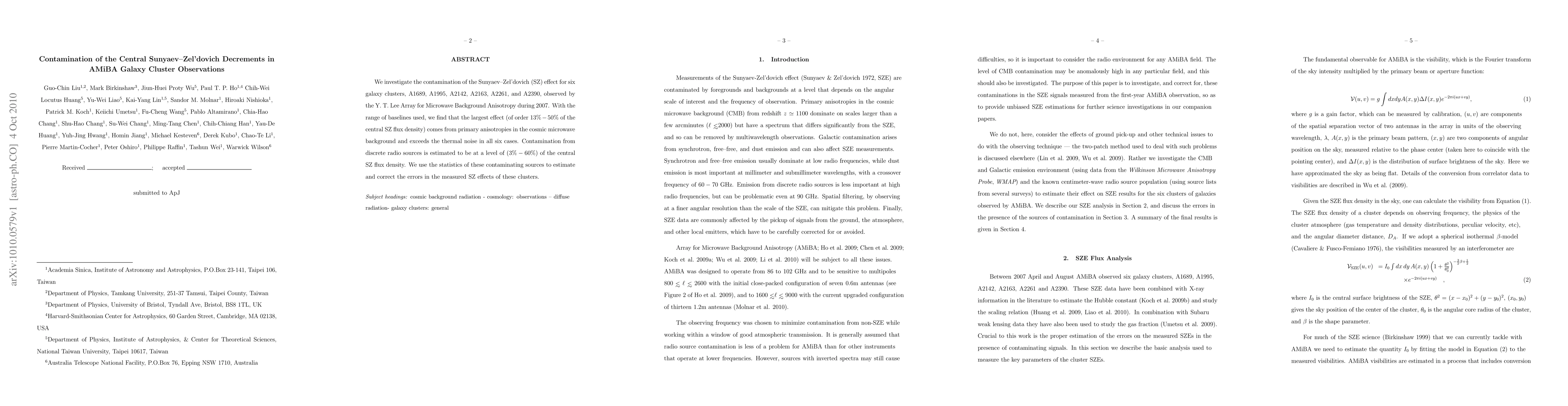 We investigate the contamination of the Sunyaev--Zel'dovich (SZ) effect for six galaxy clusters, A1689, A1995, A2142, A2163, A2261, and A2390, observed by the Y. T. Lee Array for Microwave Background Anisotropy during 2007. With the range of baselines used, we find that the largest effect (of order 13%-50% of the central SZ flux density) comes from primary anisotropies in the cosmic microwave background and exceeds the thermal noise in all six cases. Contamination from discrete radio sources is estimated to be at a level of (3%-60%) of the central SZ flux density. We use the statistics of these contaminating sources to estimate and correct the errors in the measured SZ effects of these clusters.