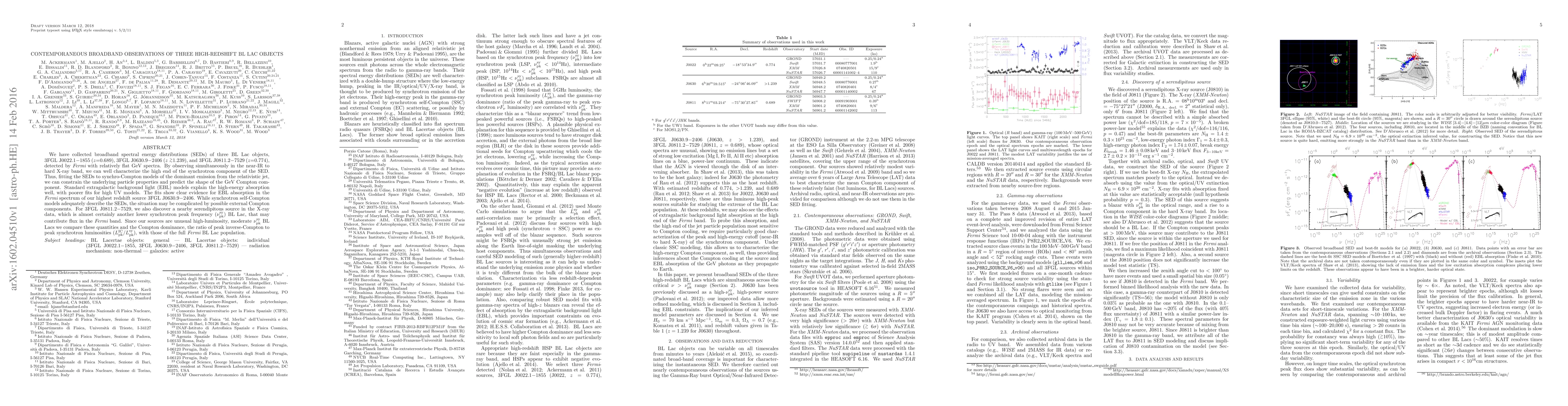 We have collected broadband spectral energy distributions (SEDs) of three BL Lac objects, 3FGL J0022.1$-$1855 (z=0.689), 3FGL J0630.9$-$2406 (z >~ 1.239), and 3FGL J0811.2$-$7529 (z=0.774), detected by Fermi with relatively flat GeV spectra. By observing simultaneously in the near-IR to hard X-ray band, we can well characterize the high end of the synchrotron component of the SED. Thus, fitting the SEDs to synchro-Compton models of the dominant emission from the relativistic jet, we can constrain the underlying particle properties and predict the shape of the GeV Compton component. Standard extragalactic background light (EBL) models explain the high-energy absorption well, with poorer fits for high UV models. The fits show clear evidence for EBL absorption in the Fermi spectrum of our highest redshift source 3FGL J0630.9$-$2406. While synchrotron self-Compton models adequately describe the SEDs, the situation may be complicated by possible external Compton components. For 3FGL J0811.2$-$7529, we also discover a nearby serendipitous source in the X-ray data, which is almost certainly another lower synchrotron peak frequency ($\nu^{sy}_{pk}$) BL Lac, that may contribute flux in the Fermi band. Since our sources are unusual high-luminosity, moderate $\nu^{sy}_{pk}$ BL Lacs we compare these quantities and the Compton dominance, the ratio of peak inverse-Compton to peak synchrotron luminosities ($L^{IC}_{pk}/L^{sy}_{pk}$), with those of the full Fermi BL Lac population.