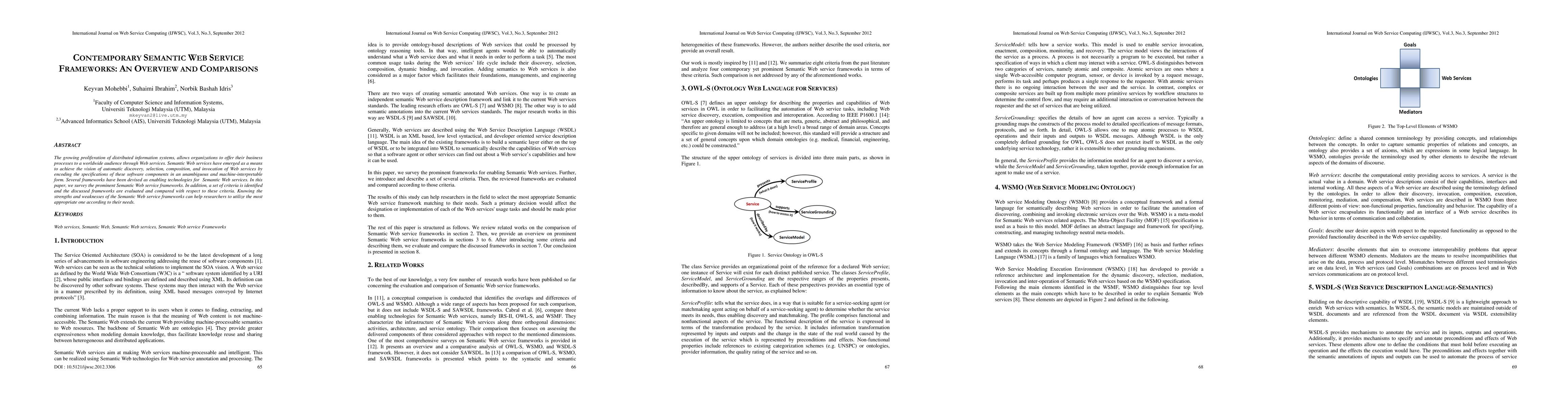 This paper surveys prominent Semantic Web service frameworks, evaluating and comparing them based on identified criteria to highlight their strengths and weaknesses, aiding researchers in selecting the most suitable framework for their specific requirements.