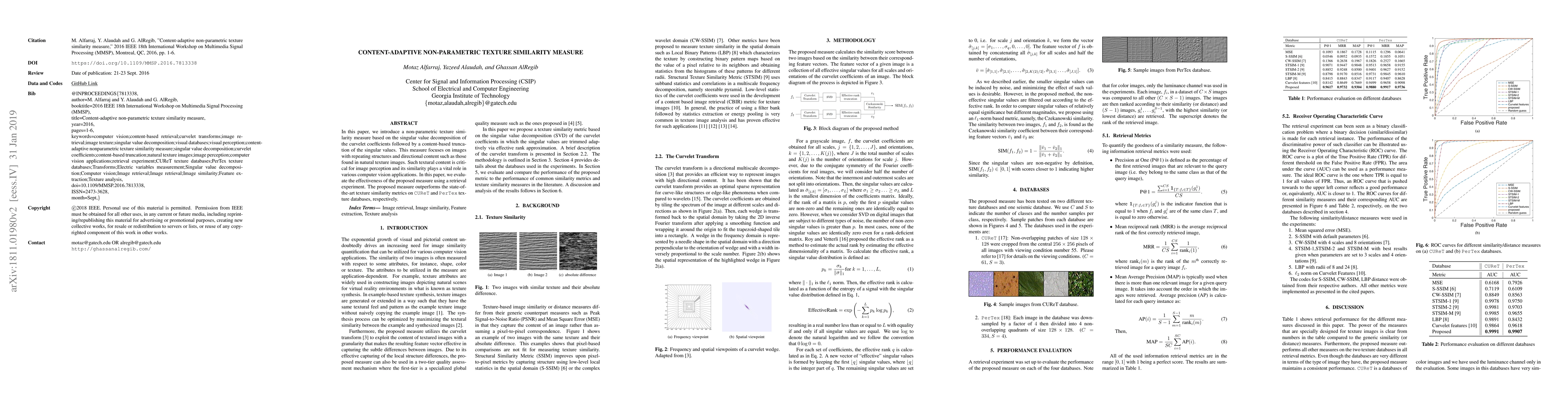 A non-parametric texture similarity measure was proposed for texture images based on the effective singular values of curvelet coefficients.