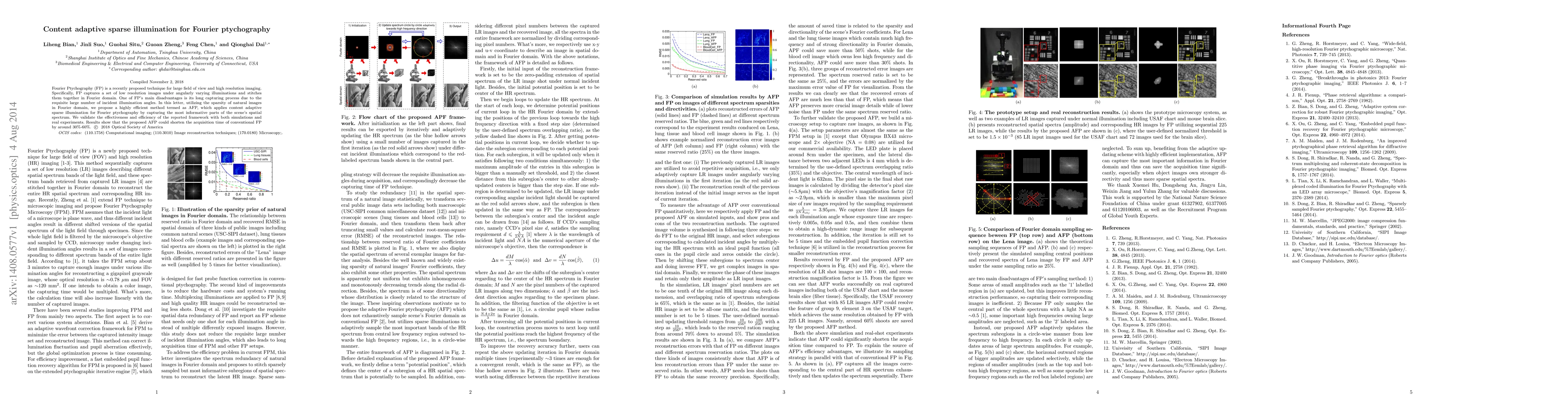 This paper proposes a method called AFP to improve Fourier Ptychography, reducing acquisition time by 30%-60% by using content adaptive sparse illumination that captures only the most informative parts of the scene's spatial spectrum. The effectiveness of AFP is validated through both simulations and real-world experiments.