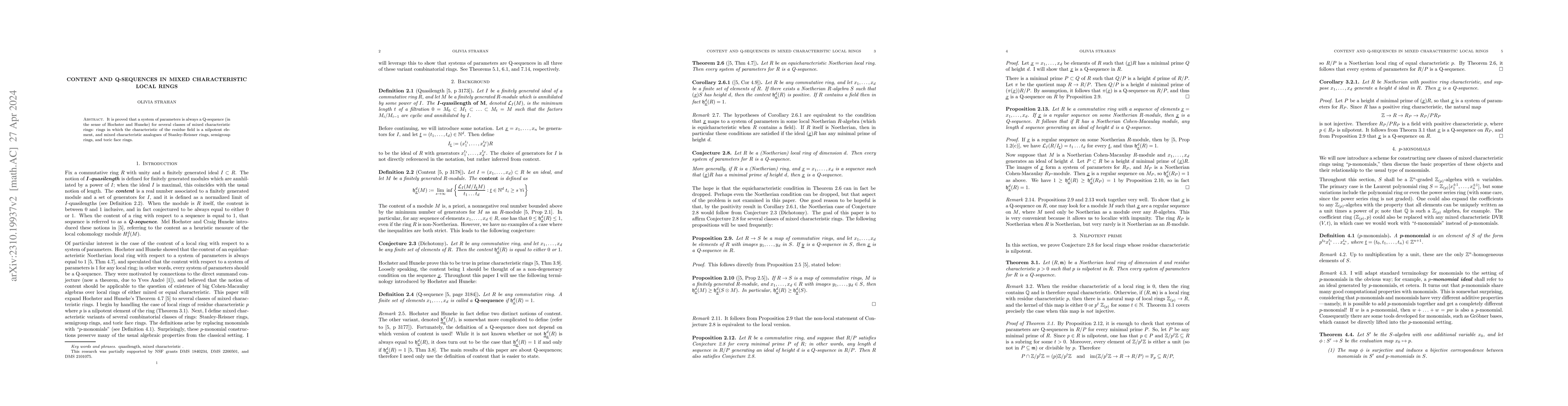 It is proved that a system of parameters is always a Q-sequence for several classes of mixed characteristic rings: rings in which the characteristic of the residue field is a nilpotent element, a mixed characteristic analogue of Stanley-Reisner rings, and a mixed characteristic analogue of semigroup rings and toric face rings.