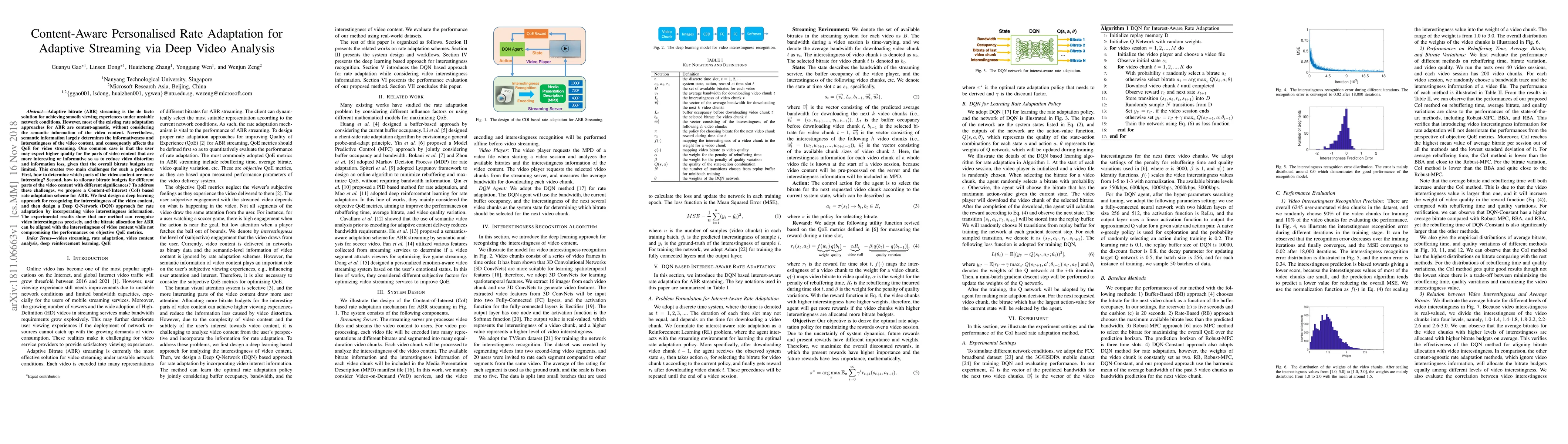 This paper proposes a Content-of-Interest (CoI) based rate adaptation scheme for adaptive bitrate streaming, leveraging deep learning to identify video content's interestingness and a Deep Q-Network (DQN) for adaptive bitrate allocation, achieving better quality of experience (QoE) by prioritizing more informative segments. Experimental results demonstrate precise recognition of video interestingness and effective bitrate allocation without compromising QoE metrics.