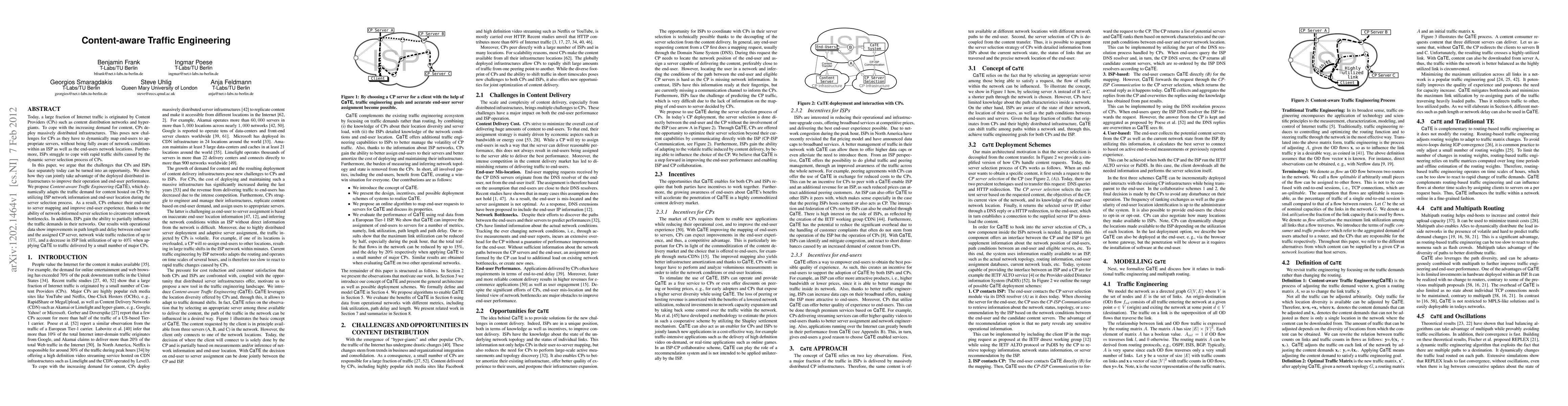 Today, a large fraction of Internet traffic is originated by Content Providers (CPs) such as content distribution networks and hyper-giants. To cope with the increasing demand for content, CPs deploy massively distributed infrastructures. This poses new challenges for CPs as they have to dynamically map end-users to appropriate servers, without being fully aware of network conditions within an ISP as well as the end-users network locations. Furthermore, ISPs struggle to cope with rapid traffic shifts caused by the dynamic server selection process of CPs. In this paper, we argue that the challenges that CPs and ISPs face separately today can be turned into an opportunity. We show how they can jointly take advantage of the deployed distributed infrastructures to improve their operation and end-user performance. We propose Content-aware Traffic Engineering (CaTE), which dynamically adapts the traffic demand for content hosted on CPs by utilizing ISP network information and end-user location during the server selection process. As a result, CPs enhance their end-user to server mapping and improve end-user experience, thanks to the ability of network-informed server selection to circumvent network bottlenecks. In addition, ISPs gain the ability to partially influence the traffic demands in their networks. Our results with operational data show improvements in path length and delay between end-user and the assigned CP server, network wide traffic reduction of up to 15%, and a decrease in ISP link utilization of up to 40% when applying CaTE to traffic delivered by a small number of major CPs.