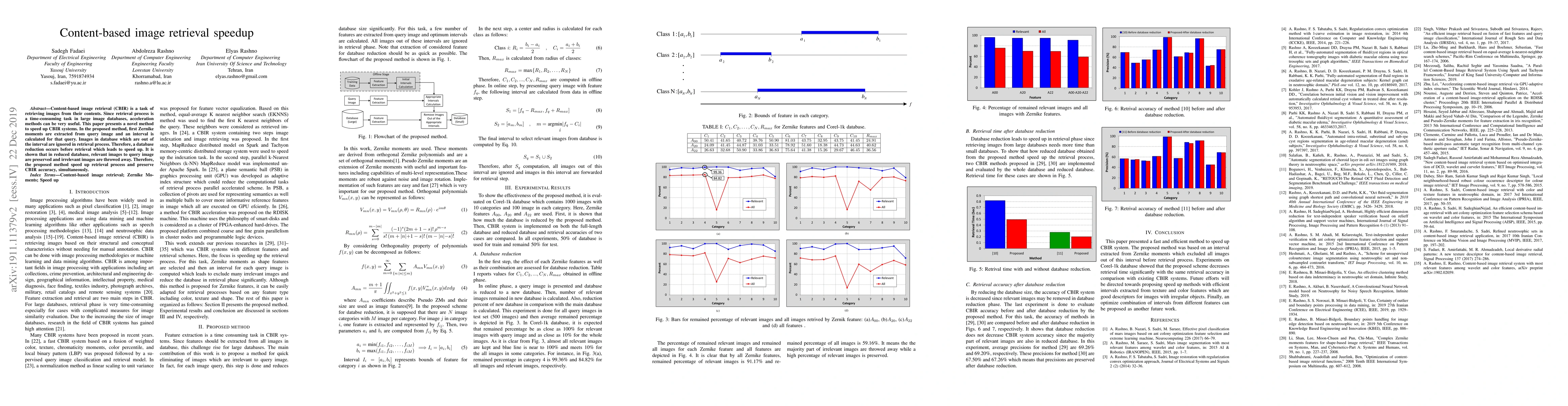 Content-based image retrieval (CBIR) is a task of retrieving images from their contents. Since retrieval process is a time-consuming task in large image databases, acceleration methods can be very useful. This paper presents a novel method to speed up CBIR systems. In the proposed method, first Zernike moments are extracted from query image and an interval is calculated for that query. Images in database which are out of the interval are ignored in retrieval process. Therefore, a database reduction occurs before retrieval which leads to speed up. It is shown that in reduced database, relevant images to query image are preserved and irrelevant images are throwed away. Therefore, the proposed method speed up retrieval process and preserve CBIR accuracy, simultaneously.